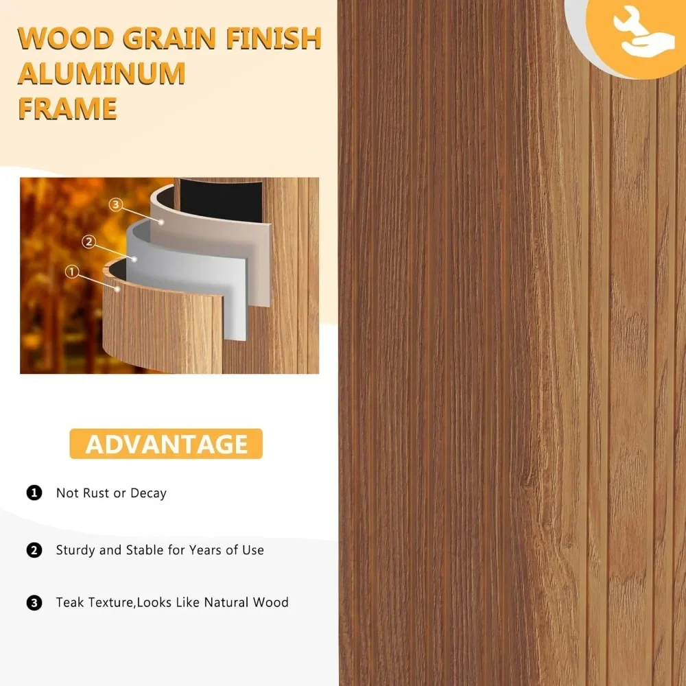 Reinforced Aluminum Frame with Wood Grain:There are expansion screws supplied to make sure the stability of our backyard gazebo and triangle structure further enhances the overall stability. Adoption of the thermal transfer printing technique makes the frames look like natural wood