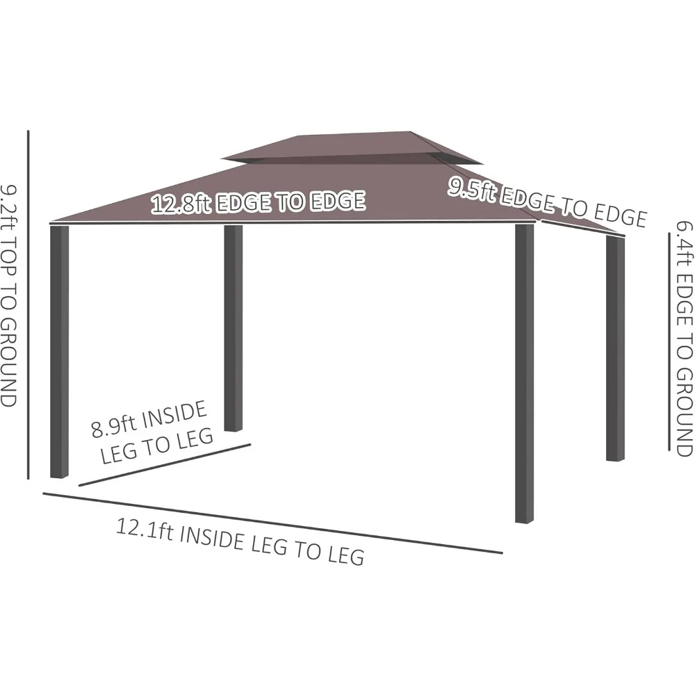 Deck Canopy Information: Overall Dimensions: 12.8' L x 9.6' W x 8.9' H. Eave Height: 6.4' H. Distance Between Columns: 12.2' L x 9.1' W. WARNING: Avoid extreme weather.