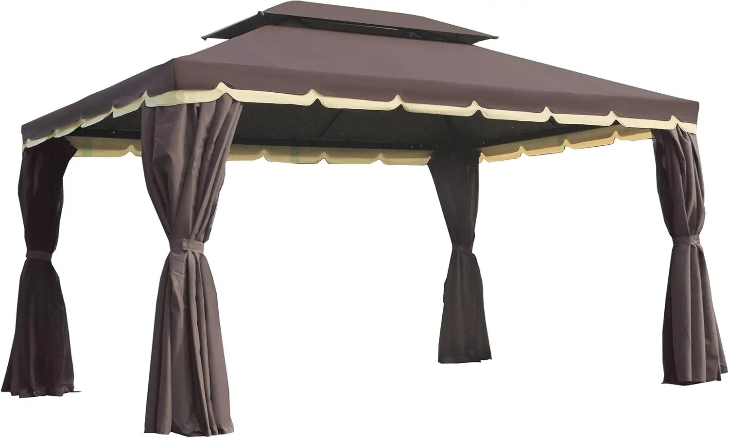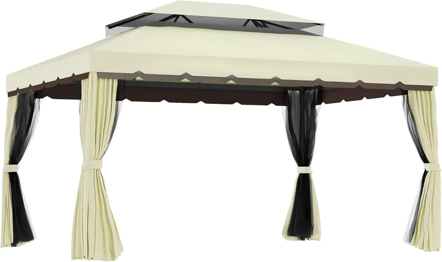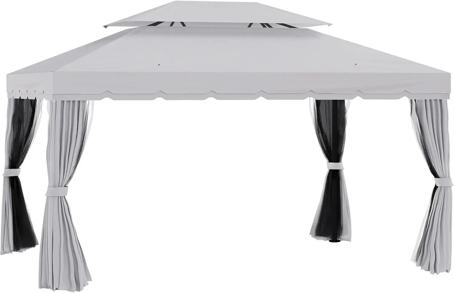 Double-Tier Roof: A two-tier roof makes our gazebo with curtains aesthetically pleasing while providing a more breathable design. It reduces heat and wind stress on the canopy. Grommets on top help drain water on rainy days, so weight won't crush the frame.
