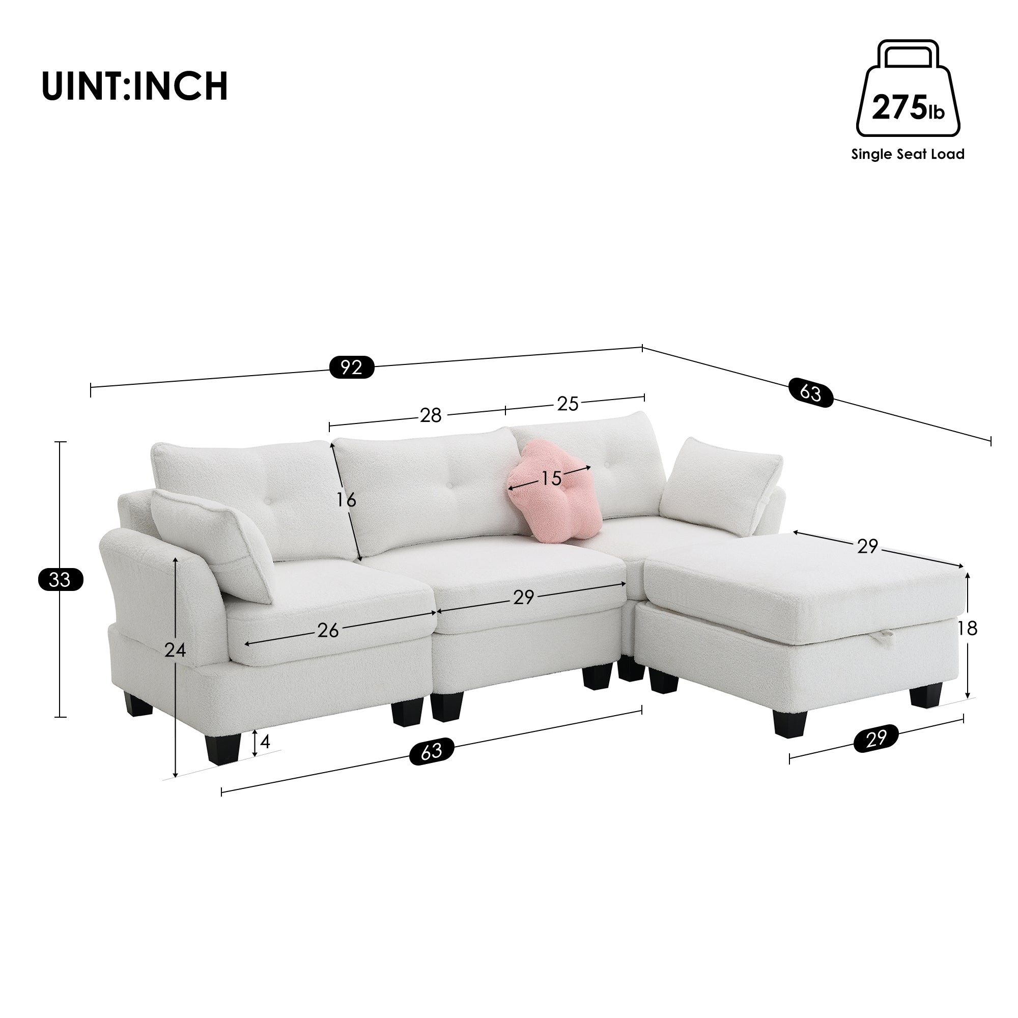 Ottoman dimensions | 29*29''(L*D) |