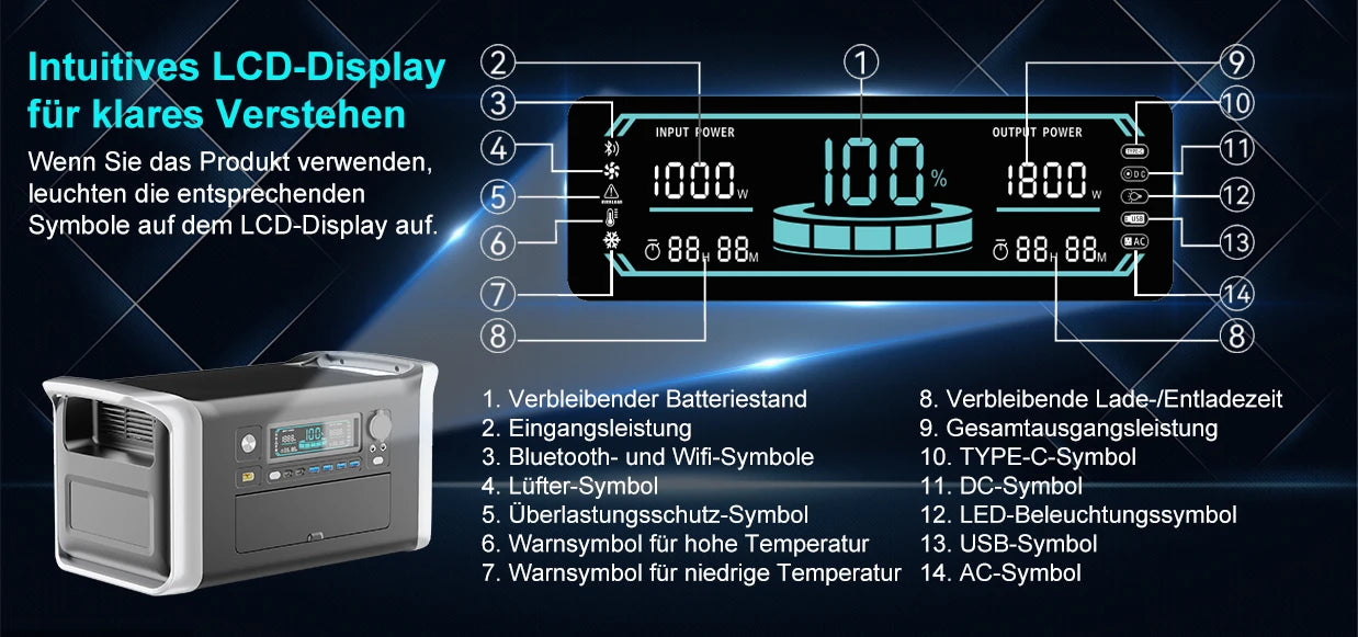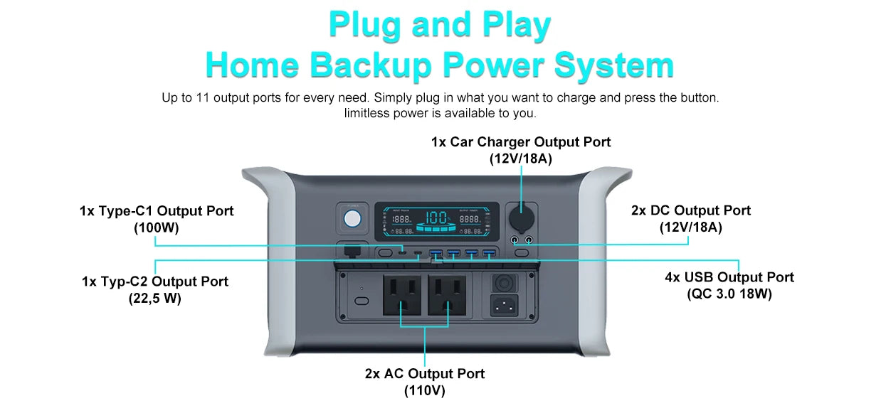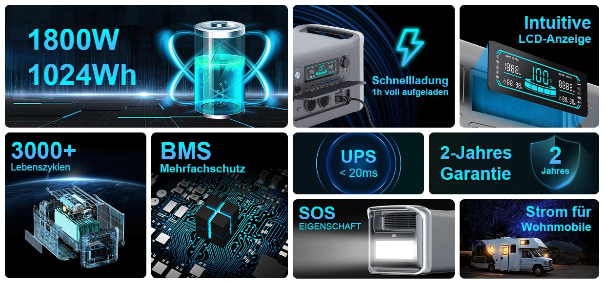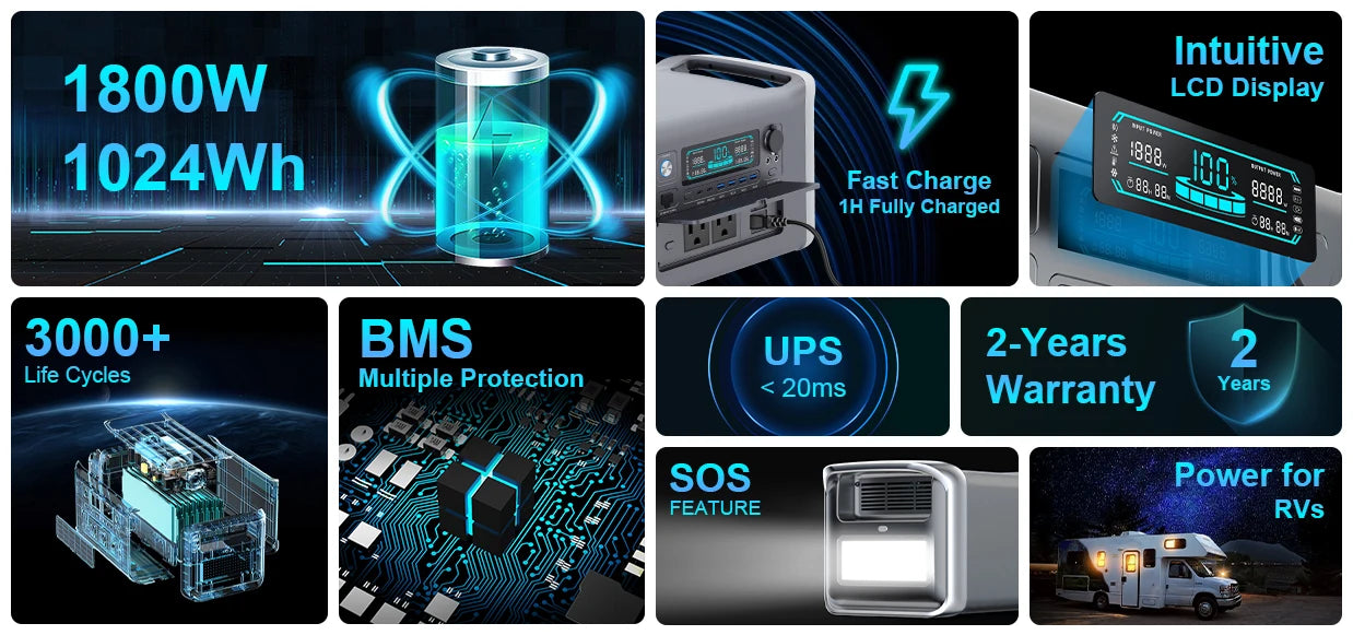 1800W 220V Portable Power Station LiFePo4 Battery Solar Generator Storage Energy 1600W 110V 1024Wh Backup PowerBank Camping Fishing