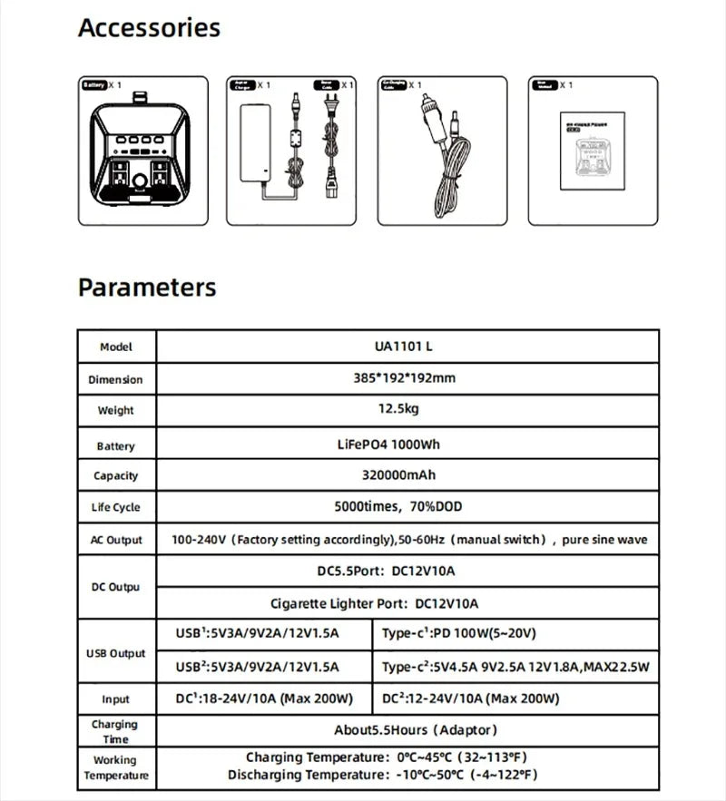 Battery capacity: 320000mAh(1024Wh)