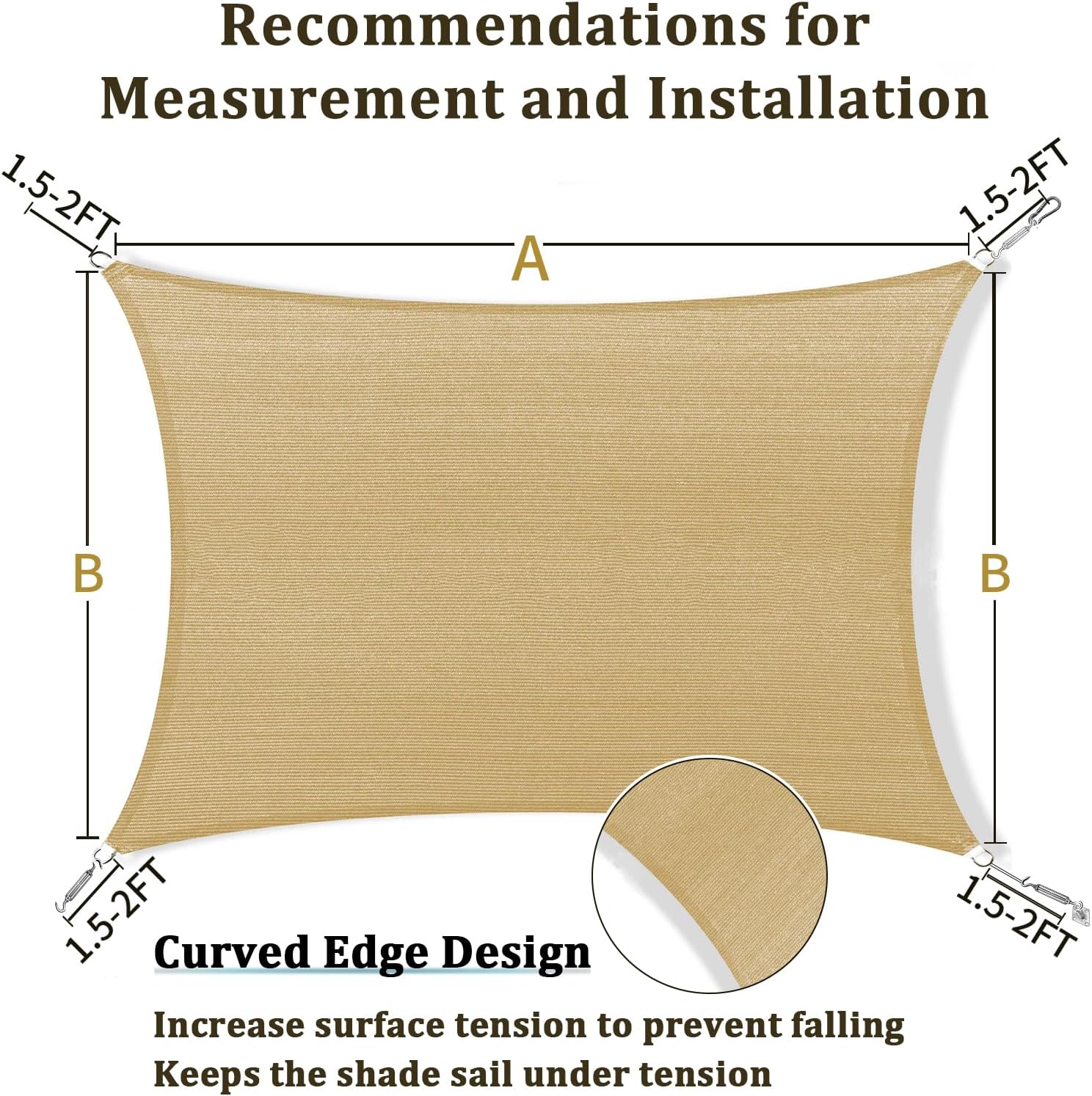 12'X20' Sun Shade Sails Curved Canopy Rectangular Sand 185Gsm Shade Sail Permeable For Patio De Yard Backyard, (We Make Custom