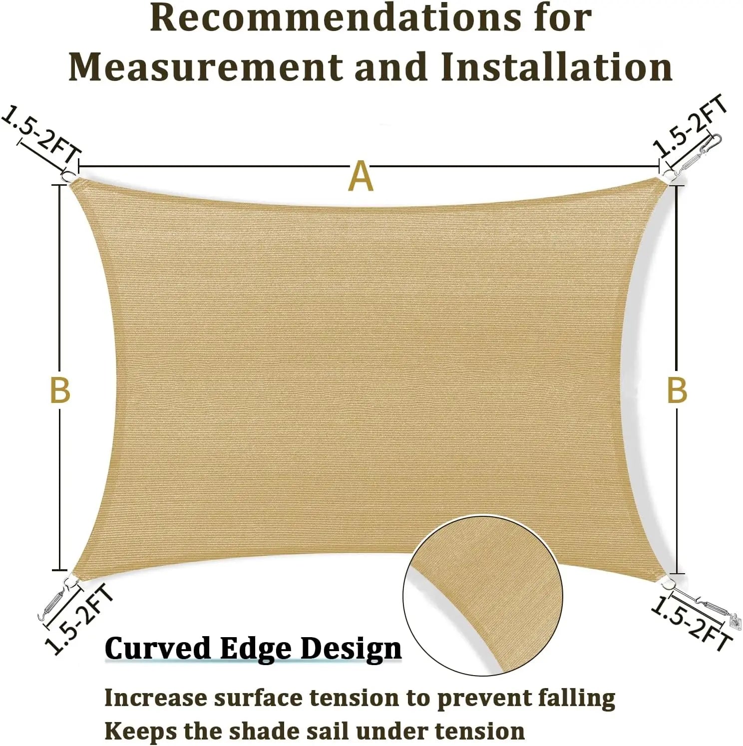 12'X20' Sun Shade Sails Curved Canopy Rectangular Sand 185Gsm Shade Sail Permeable For Patio De Yard Backyard, (We Make Custom Size)