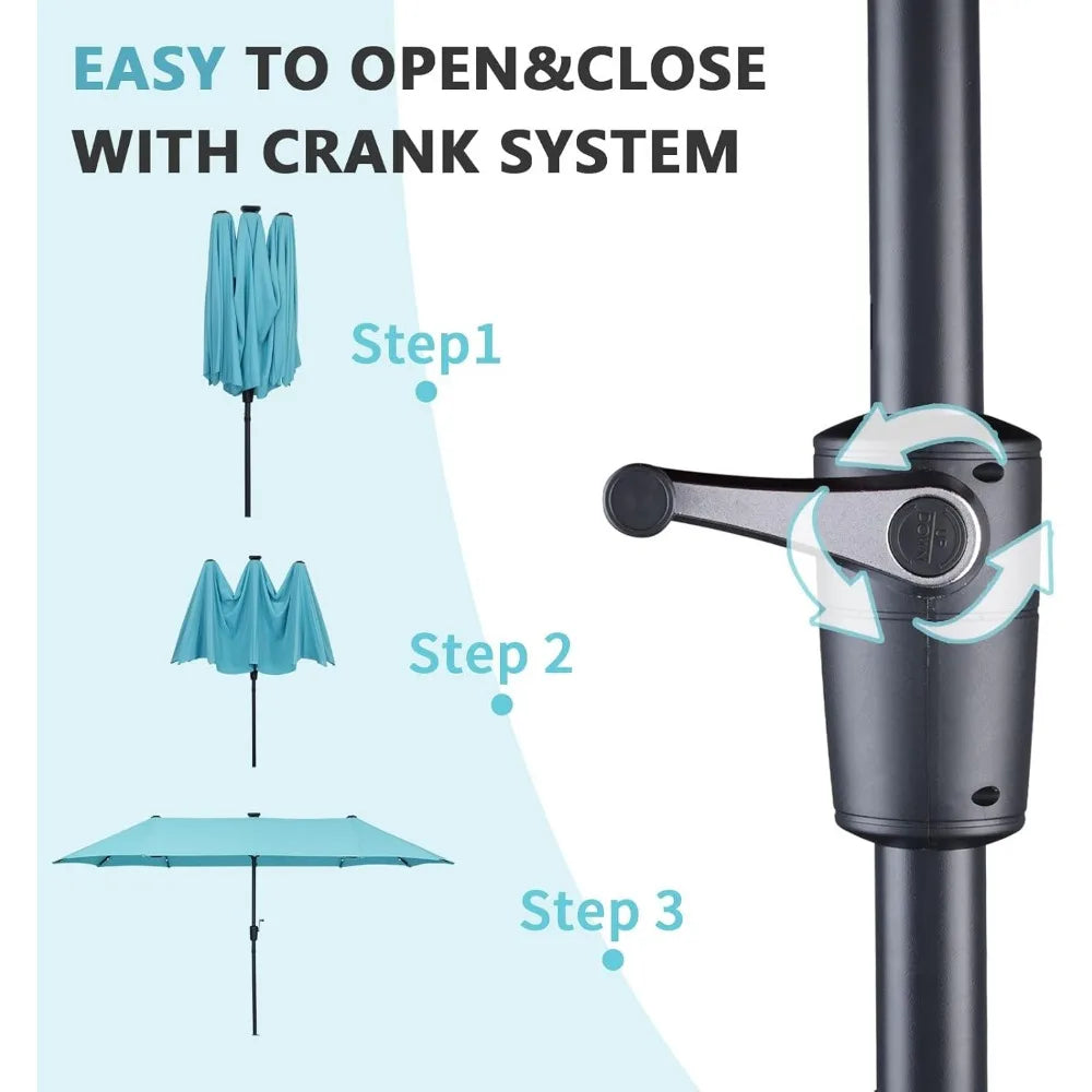 Fading resistant & Waterproof: Our 13-foot double-sided patio umbrella is made of 100% durable polyes