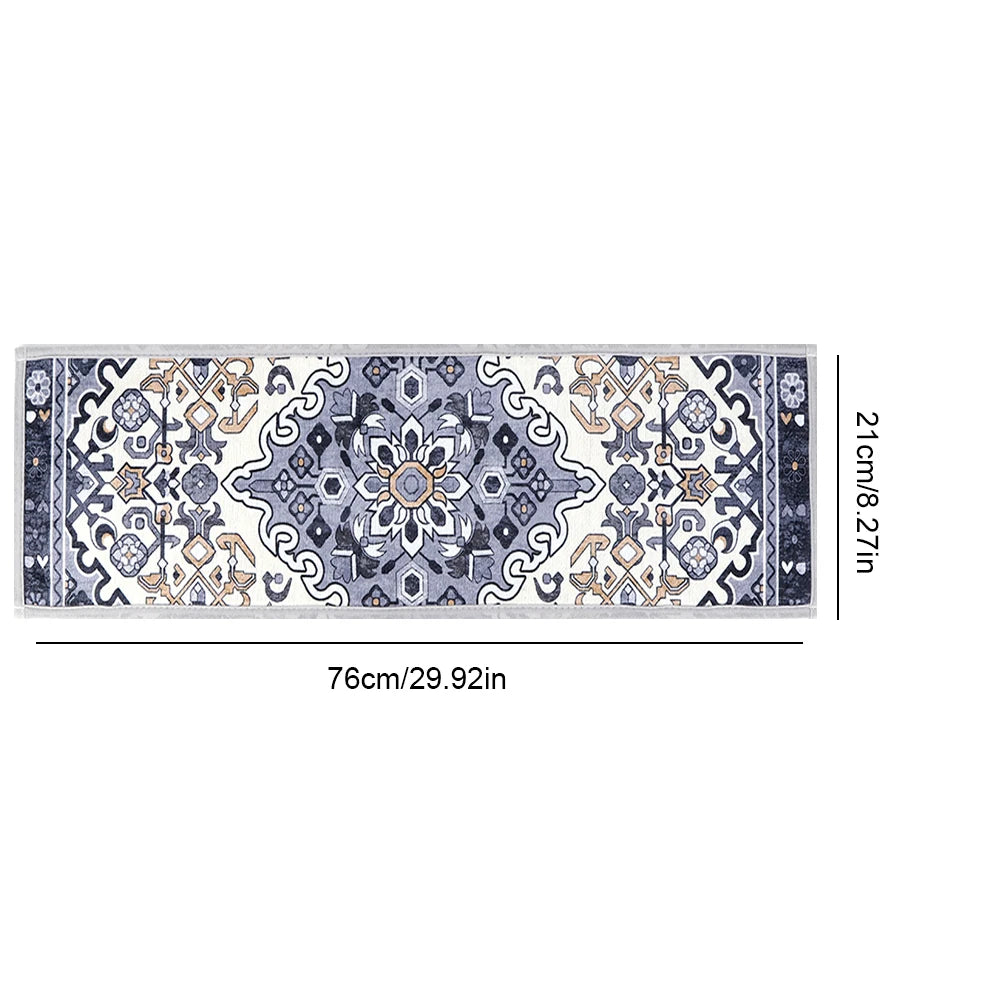 Feature: 1. Premium Quality and Material: Our Carpet Stair Treads Set is crafted from high-quality polyester material, offering a soft yet durable surface. These stair treads are designed to withstand heavy use without tearing or piling. The appropriate thickness ensures comfort underfoot and helps keep your feet warm from the cold stairs. Additionally, they reduce stair noise, providing a quiet and serene environment for your family and elderly pets. 2. Enhanced Non-Slip Adhesion: Featuring advanced TPR self-adhesive technology, these Stair Treads stay securely in place, offering excellent anti-slip performance. Suitable for any indoor smooth surface stairs made of wood, marble, tile, or glass, our stair treads help your children and pets navigate the stairs safely without the fear of slipping. 3. Easy to Remove and Clean, Reusable: If you need to reposition or remove these Rug Treads, they won't leave any residue, protecting your original stairs from damage. When the stair rugs get dirty, simply vacuum pet hair or children's spills, or toss the stairway carpet rugs into the washing machine. After washing, it's recommended to air dry in the shade, avoiding dryer or direct sunlight. 4. Simple Installation, Customizable Cutting: These Indoor Stair Rugs can be installed in just 5 minutes without the need for additional double-sided tape, glue, or carpet nails. Installation steps: 1. Clean the stairs. 2. Peel off the backing film. 3. Stick the stair treads onto the stairs. You can also easily cut the stairway carpet rugs with scissors to match corners or special step sizes. Thanks to our high-stability crease technology, you don't have to worry about delamination. 5. Elegant Bohemian Design: Our Stairway Carpet Rugs feature a Bohemian style, adding a touch of romantic, folkloric, and free-spirited charm to your home. With an artistic flair, these stair treads not only enhance safety but also elevate the aesthetic appeal of your staircase. Specification: Origin: USA Material: 100% Polyester Feature: Anti-Slip Use: indoor Product size: 76*20*0.5CM/29.92x7.87x0.2inch