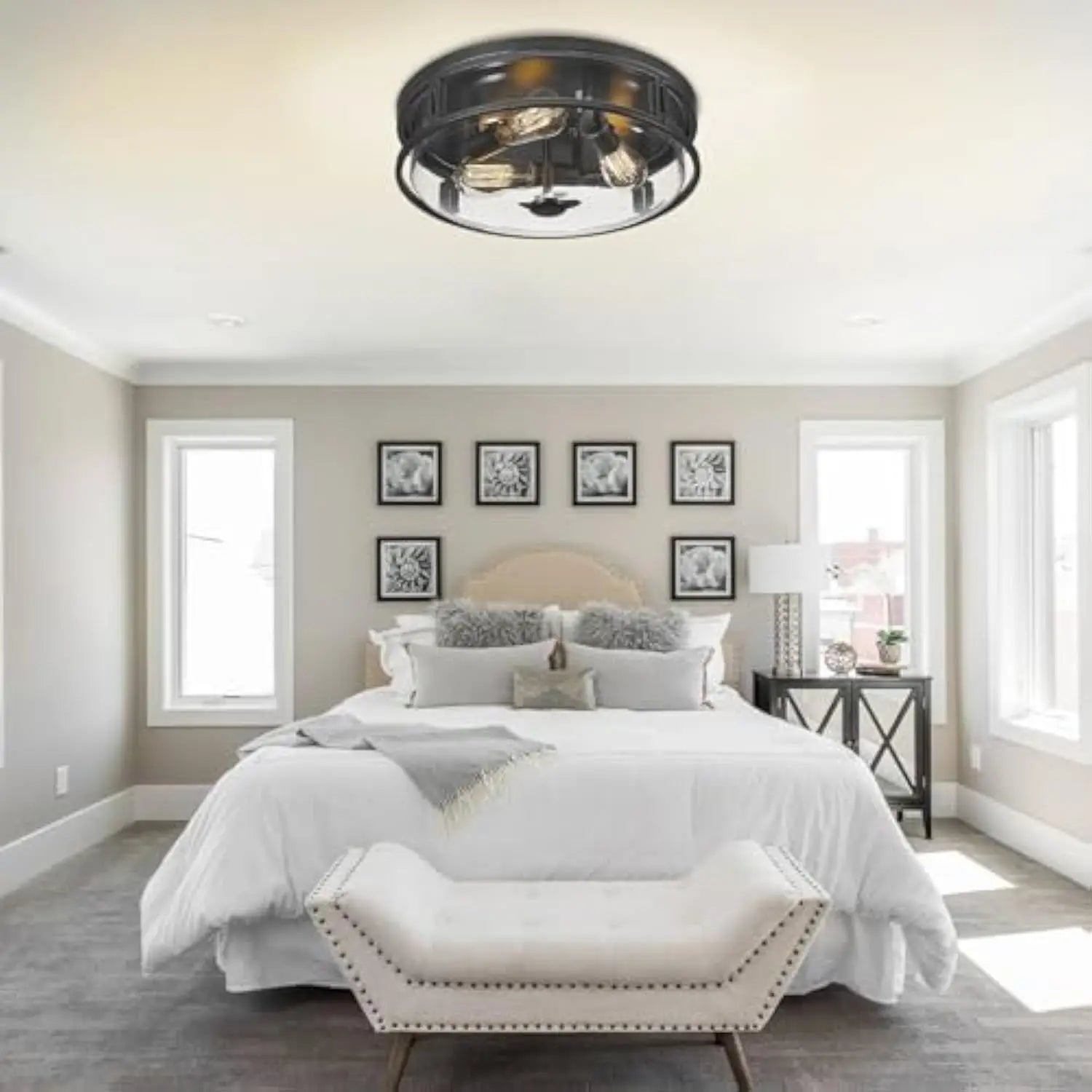 【flush mount design & vintage style】--这款 ceiling light is featuring a unique glass shade and a black metal base Greatly create a farmhouse and retro look in your home. , which offers add style and beauty for your living space, making vintage and stunning embellishments for your home decoration. 【easy installation & convenient use】--includes all mounting hardware for quick and easy installation. With step-by-step instructions, the installation of ceiling lighting is really simple, don't worry about it being difficult to install anymore,完美 for any do-it-yourself project. 【e26 base socket & bulb requirement】--the ceiling light fixture with standard usa socket is compatible with e26 base bulb, using 3pcs max 60w e26 bulbs(bulbs not included). Works with led, cfl, incandescent, and halogen bulbs. Offer plenty off light to your room and bring a comfortable country glow. 【wide Application & Perfect Decoration】--the Flush Mount Light Fixture Is Ideal For Hallway, Entry, Porch, Mudroom, Stairwell, Kitchen, Closet, Kids Room, Dining Room, Bedroom, Living Room, Not Only The Household Area But The same An Ideal Choice For Commercial Areas: Bars, Cafes, Offices, Hotel And Restaurant. 【safety & warranty】--etl is listed for safety, we are very confident in the quality of our ceiling light,提供 1 year warranty,如果您有任何质量或技术问题,请随时通过客户服务与我们联系。
