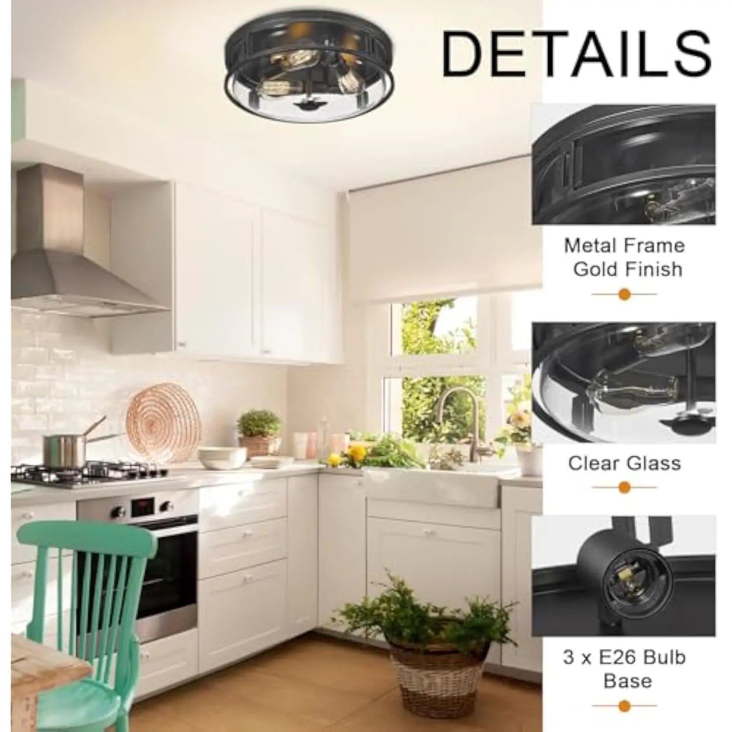 16 英寸 Flush Mount Ceiling Light with Clear Glass Shade, 3-Light Indoor Outdoor Farmhouse Lighting Flush Mount Lights for Kitc