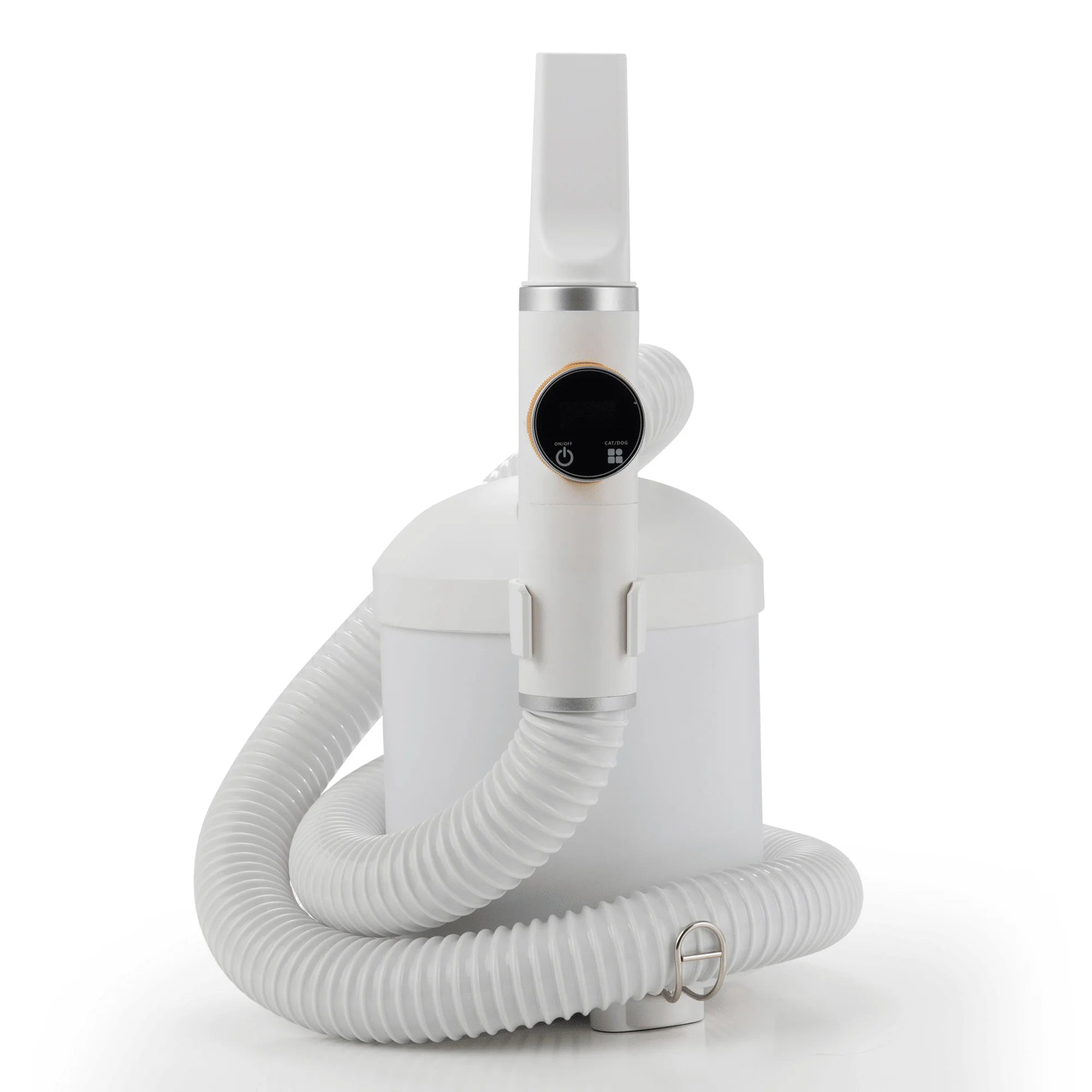 Features: [Safety Assured, Care Continuous]: Crafted with leak-proofing, anti-scald and temperature control features for further safety. The waterproof, slip-resistant base provides a stable operation. The handle's integrated heating system remains cool, peaking at 113°F for a reassuring drying.[Advanced LED Panel]: The smart LED display presents data with clarity, offering 17 distinct wind speeds from 55 to 280 MPH and a temperature range of 95°F to 140°F, allowing for precise customization of your pet's ideal drying environment.[Powerful and Swift Groomer]: Equipped with a 1600W motor which makes the dryer show robust airflow, drying a full-grown Labrador in under 19 minutes. Plus, it releases 80 million negative ions to eliminate static, preserving your pet's coat in a soft, fluffy and shiny state.[Smart Switching]: This pet blower features effortlessly switchable diverse modes for both dogs and cats. It comes with 4 specialized nozzles, catering to the grooming requirements of various pets and hair types, simulating a salon experience at home![Quiet Operation for Comfort]: Engineered with advanced ultra-quiet and shock-absorbing features, this dryer operates at a quiet 61-71 dB, ensuring pets remain calm without fear of loud noises, making you and your pet bask in the harmonious and cozy atmosphere. Specifications: Color: WhiteMain Material: Steel + ABS + PVCOverall Dimensions: 7.28"(L) x 7.28"(W) x 9.06"(H)Maximum Wind Speed: 35m/sTemperature Range: 95°F - 140°FRated Power: 1600WRated Voltage: 110VNet Weight: 6.17lbs
