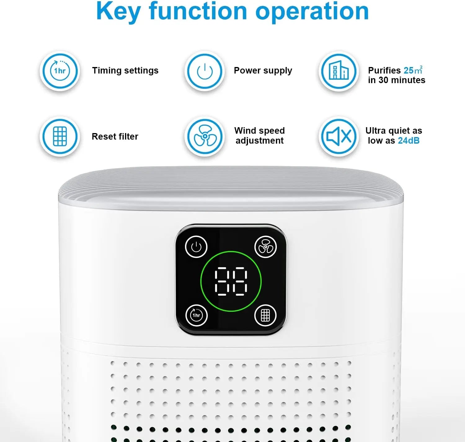 two packs/save your money/quiet(24db)/H13 HEPA filter/lcd touch screen/three-layer filtration/pet friendly/portable and smart