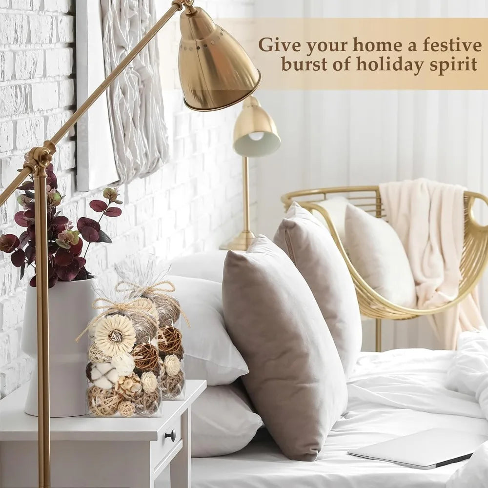 2 Pack Decorative Balls Potpourri Bowl Filler Decor Natural Vase Bowl Filler Assorted Spherical Rattan Twigs Wicker Balls Cotton for Home Decor Centerpiece(Brown)