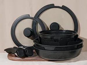 Differ from others, our pot sets for cooking nonstick is dishwasher available without worrying of black stains from the bottom.