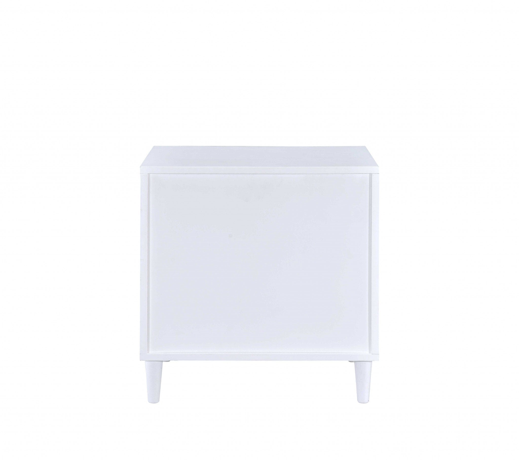 Your bedroom or dressing room can get trendier with this stylish and highly functional nightstand. Our nightstand combines beauty and versatility to help get your room organized as well as brighten the atmosphere. It features white frame and three wooden drawers in weathered oak finish with glide side metal that serve as a perfect storage space for your personal essentials. The rectangular top will be an ideal place to position your table lamp or flower pot. The weathered front drawers combine well with the white tapered legs to make this piece awesome addition to your living space. Weight capacity: 26Lbs.