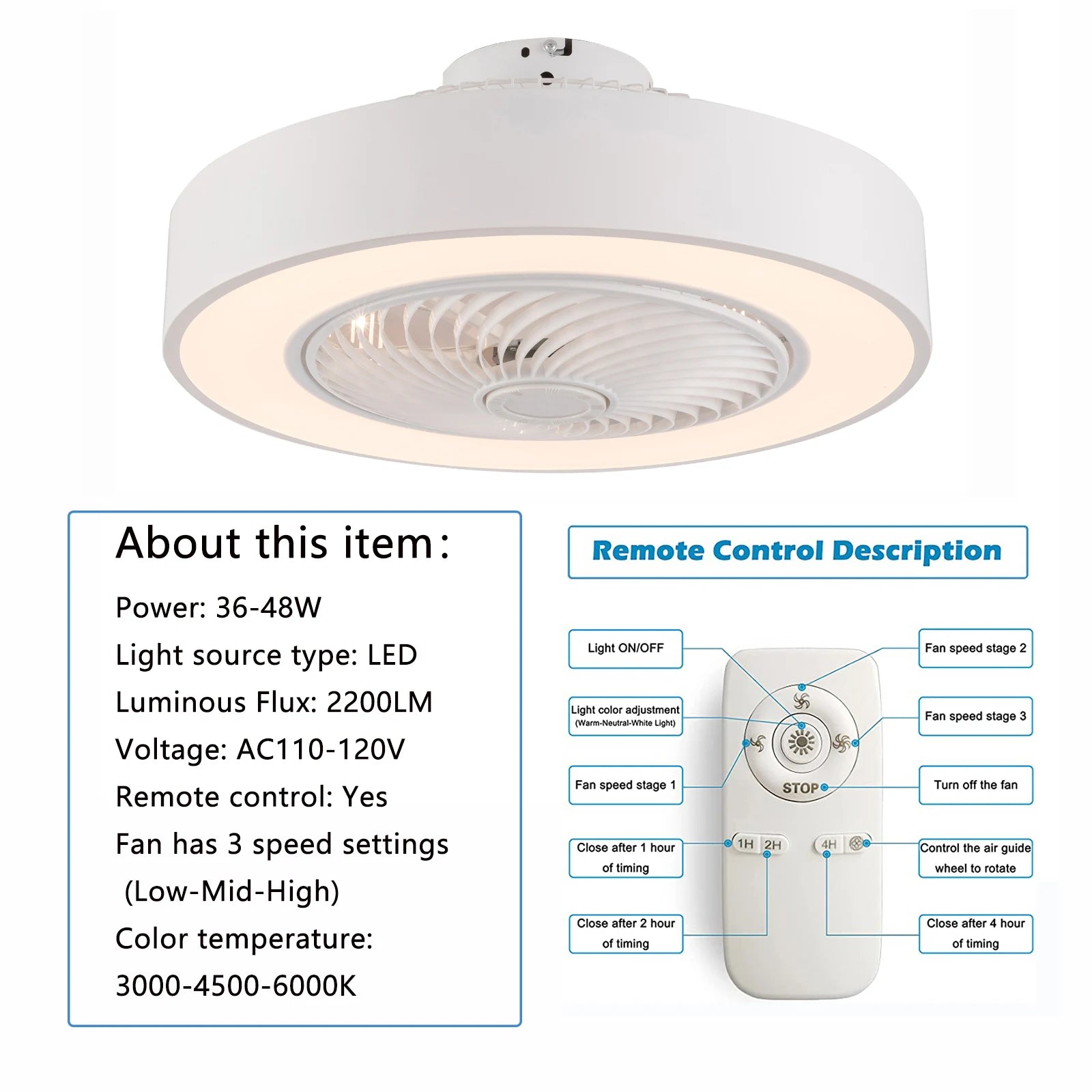 The Semi Flush Mount Enclosed Ceiling Fan meets your living lighting, and it also satisfies your coolness and has 3 gear fan speeds and 3 lighting color modes to create a different family atmosphere.