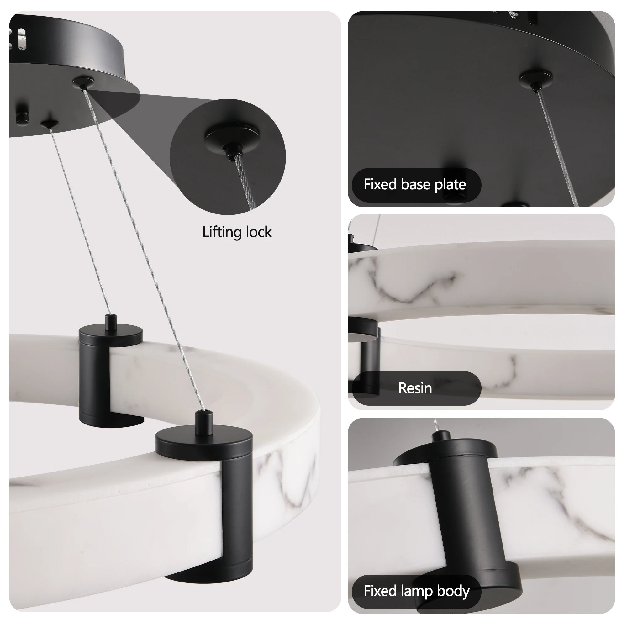 Modern LED Pendant Light, 23.6-Inch Round Hanging Chandelier with Adjustable Height, Imitation Marble Finish Resin Ring Ceiling Light for Dining Room, Kitchen Island, Living Room