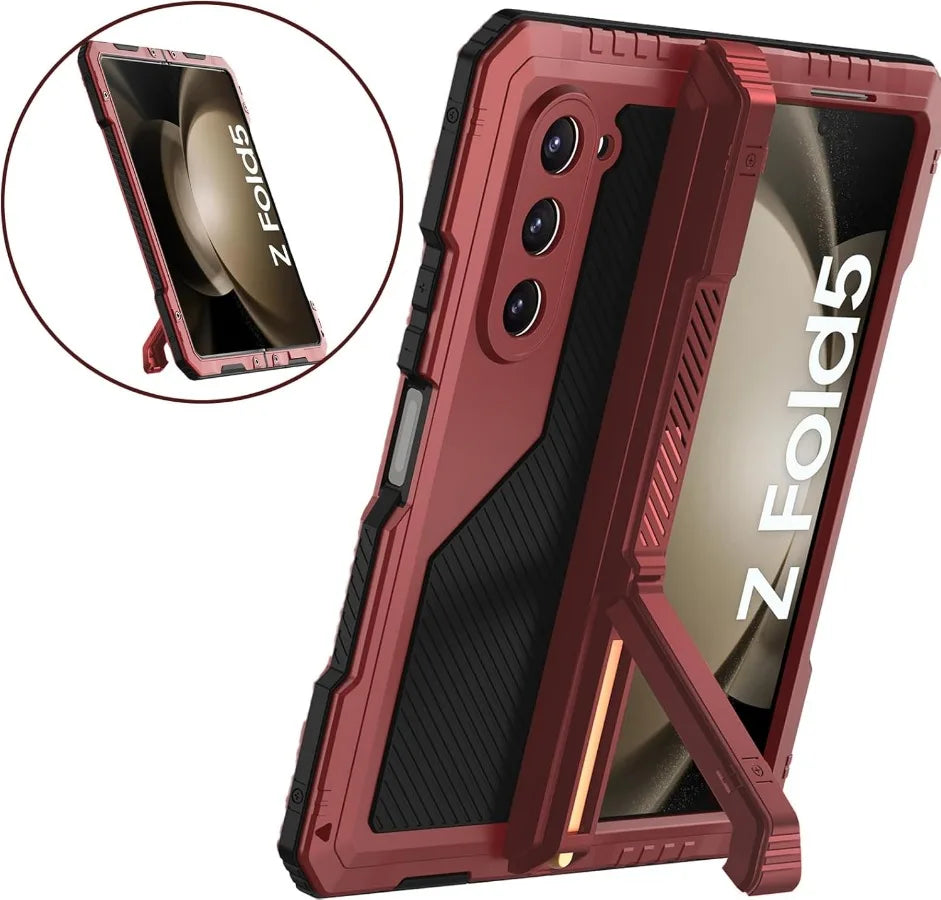 〖Military-Grade High Impact 360°Protection〗- Superior Hard Front and back Aluminum Metal frame + inner Soft Silicone Cushion materials absorb impacts on the front and back (eight screw fixation) -3 layers defender case provide up to 6 feet military-grade shock-absorption protection,prevent your Galaxy Z Fold 5/6 from accidental drops, bumps and scratches. Rugged to adapt to all harsh environments and non-slip touch feels.