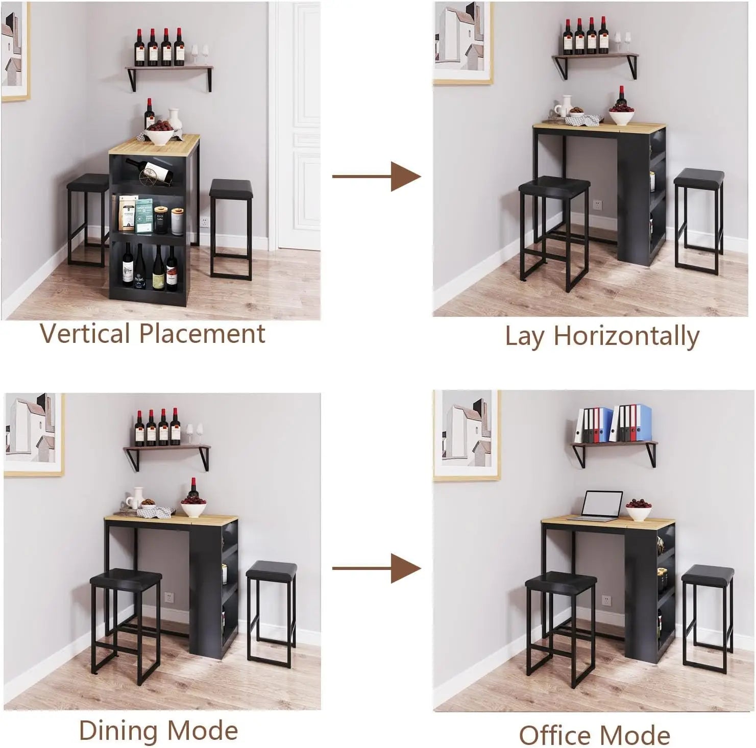 3. Good Spatial Design:This bar dining table is very suitable for small spaces, such as living rooms, restaurants, and even bedrooms. When not in use, two bar stools can be conveniently stuffed under the table, saving more space
