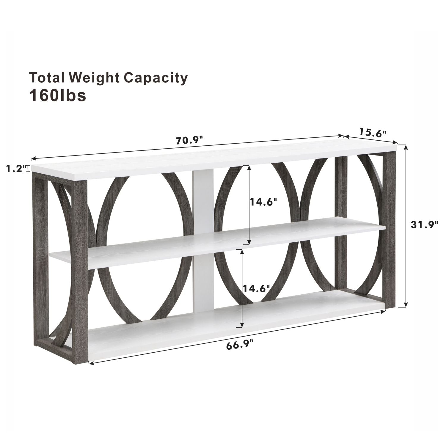 Spacious table top: three tiers of 70.87 inches * 15.55 inches table top provides more space for shelving.