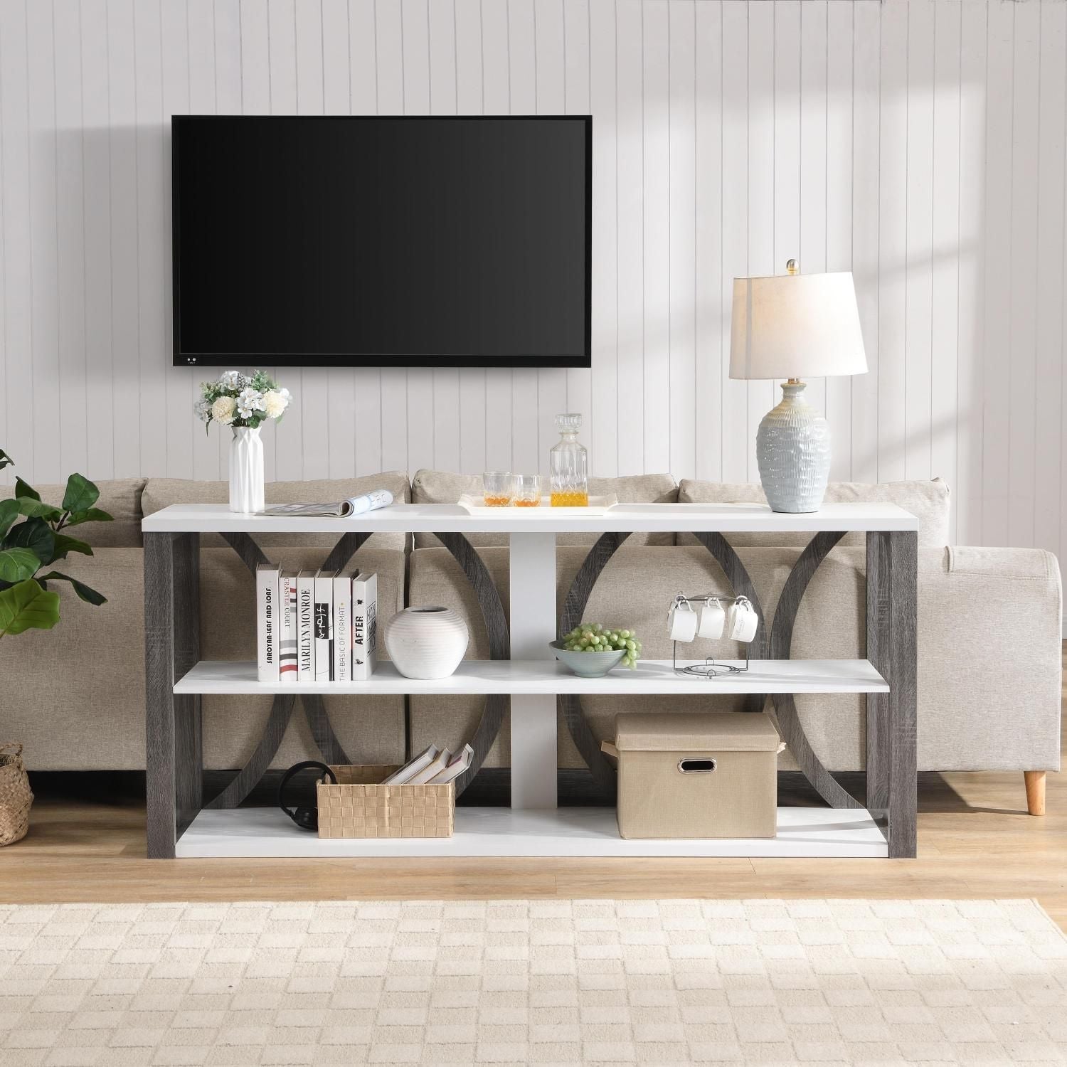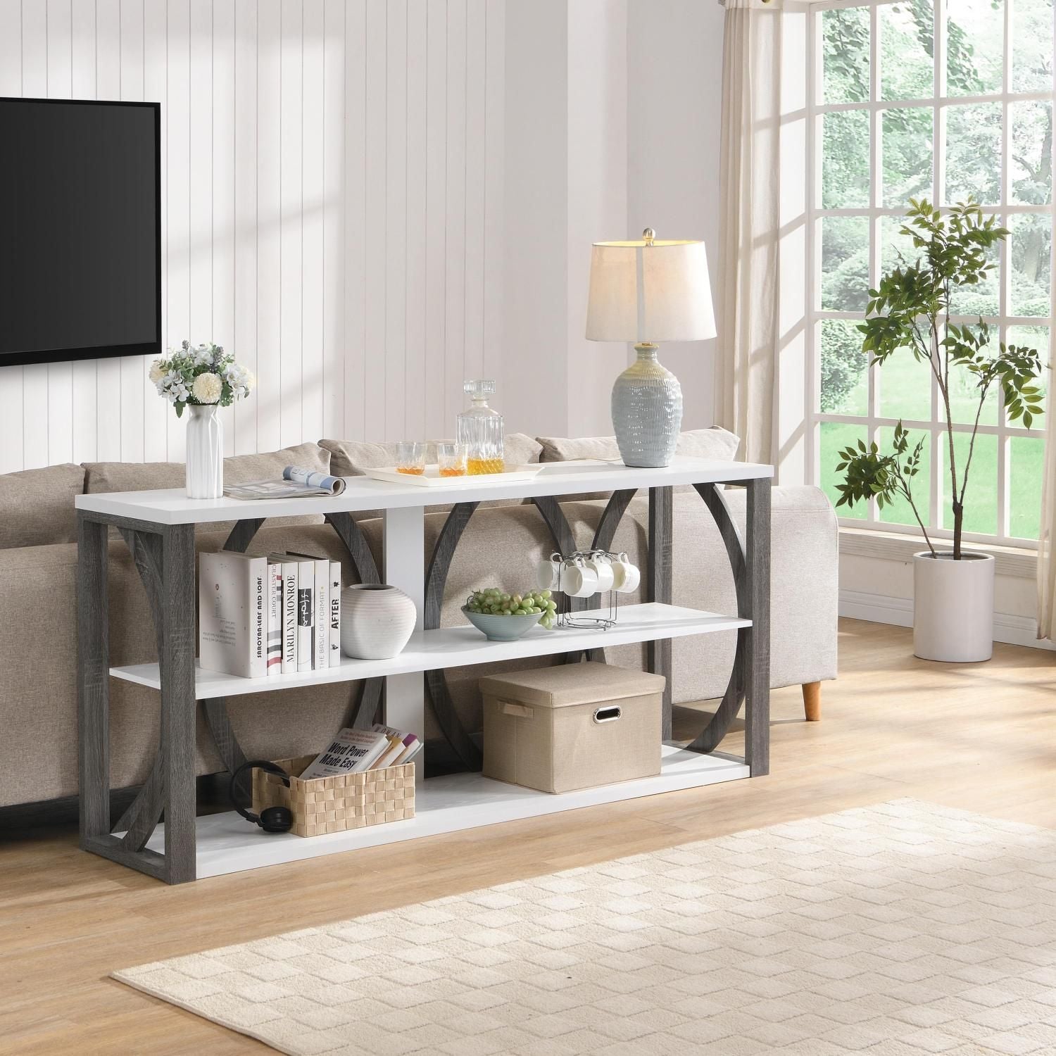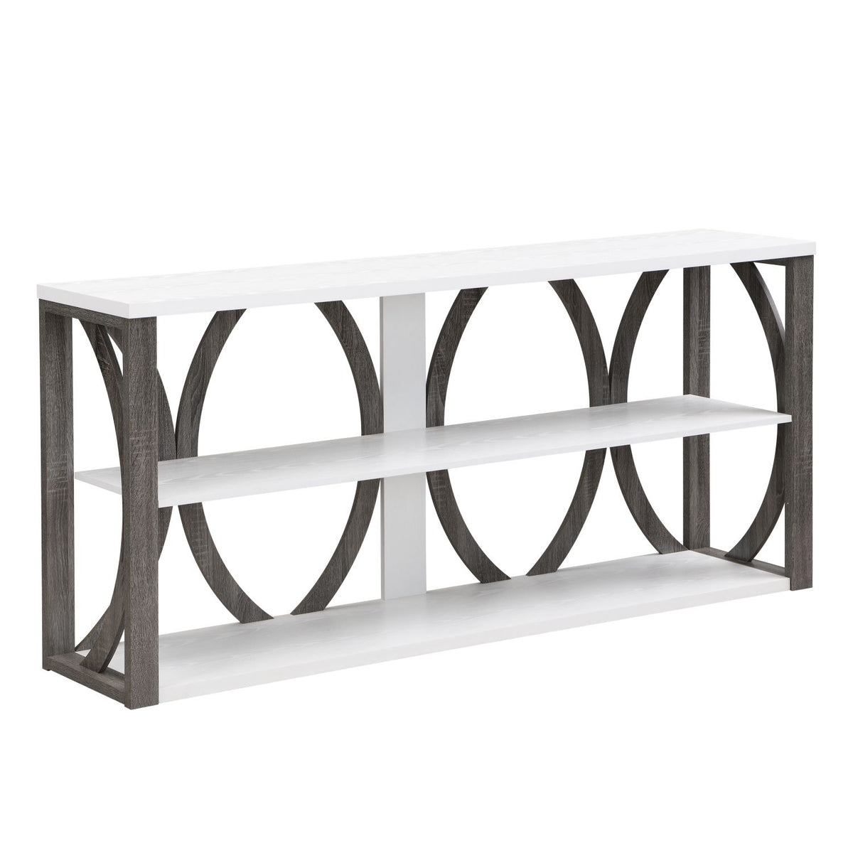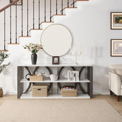3-Tier Industrial Console Table, 70.87 inch, Narrow Entry Table Long Table with Storage for Entryway, Living Room, Foyer, Hallway,white.