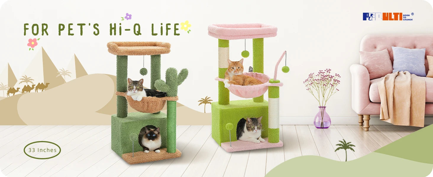 Unique Design: This 4-in-1 cat tree that designed in a cactus style and a fresh flower style provides a comfortable and relaxing space for your cats.