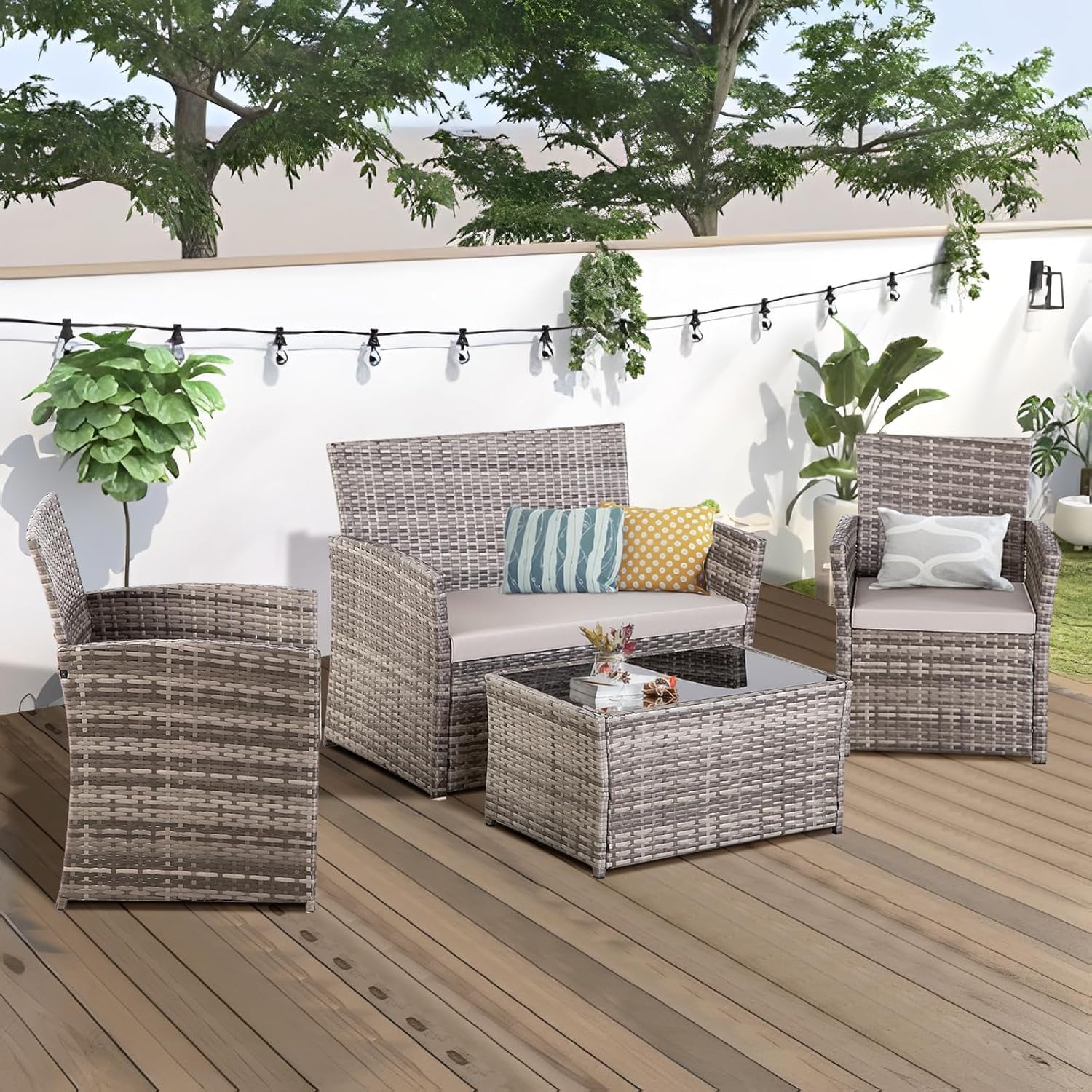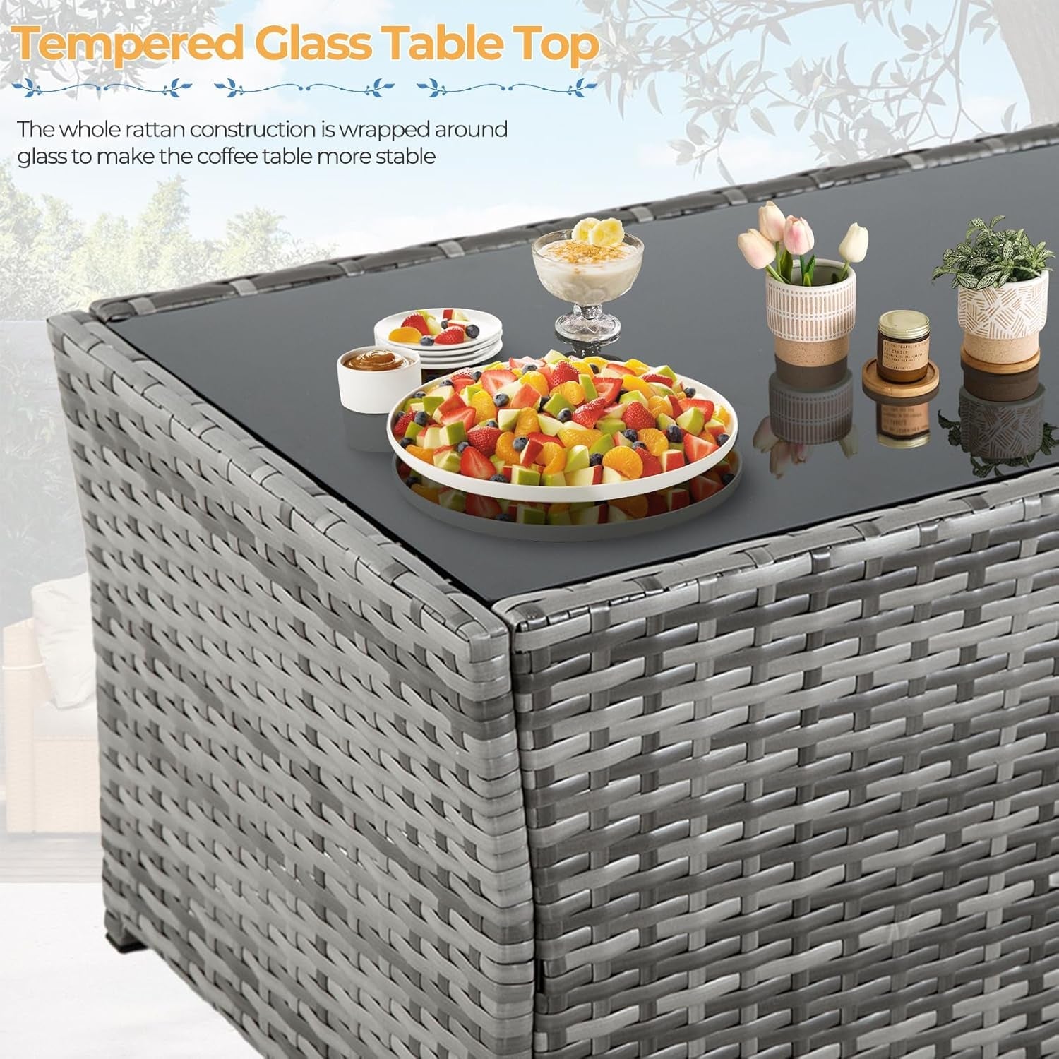Can this furniture be used indoors? Yes, the wicker patio set is versatile and can be used indoors or outdoors according to your preference.