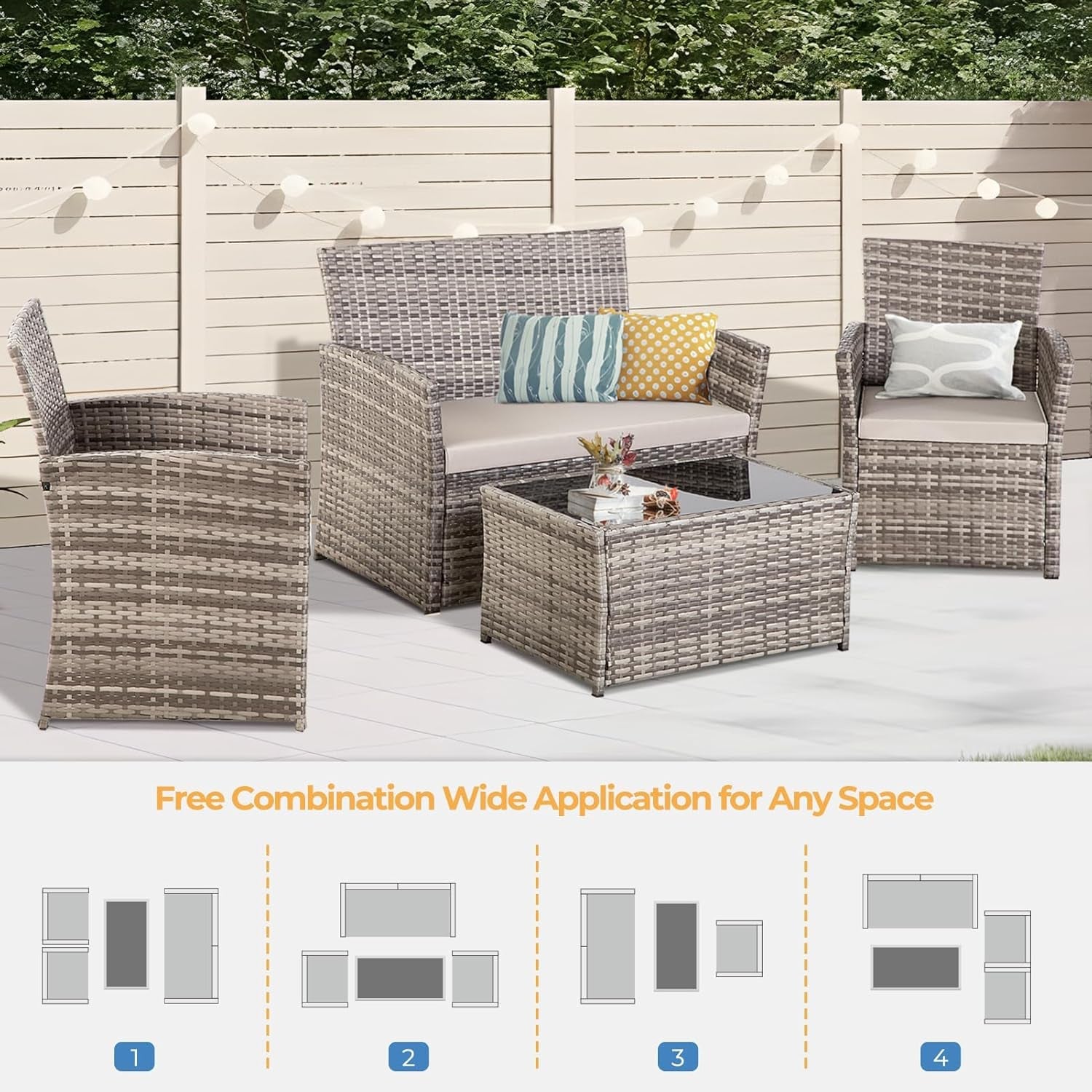 Transform your outdoor space with this Stylish 4-Piece Wicker Patio Sofa Set, expertly crafted to provide comfort and elegance. This premium outdoor furniture set features a combination of durable PE rattan and a robust powder-coated steel frame, perfect for enhancing your patio, garden, or balcony.