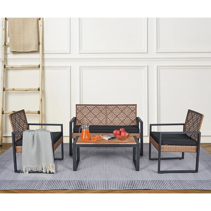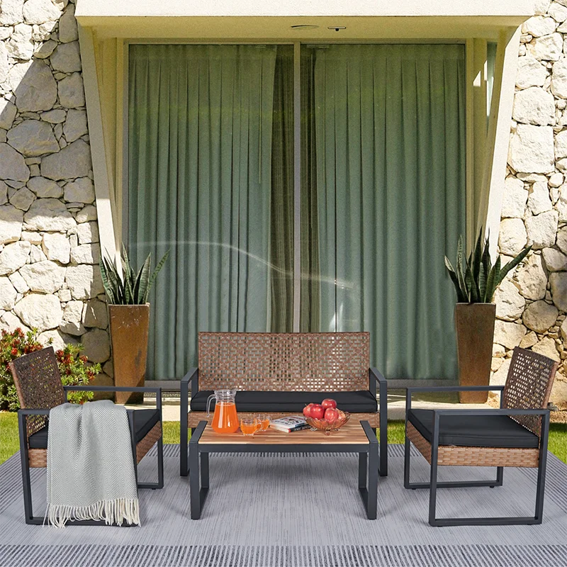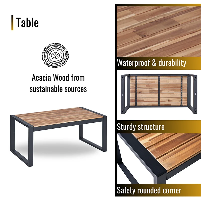 MODERN SET IN COZY HOME: Versatile and stylish outdoor patio furniture set, designed to elevate your outdoor living space with comfort and elegance. Crafted from high-quality PE rattan, powder coating frame with solid acacia wood, this set combines durability with a sleek aesthetic, perfect for any patio, balcony, porch, garden, backyard and lawn.
