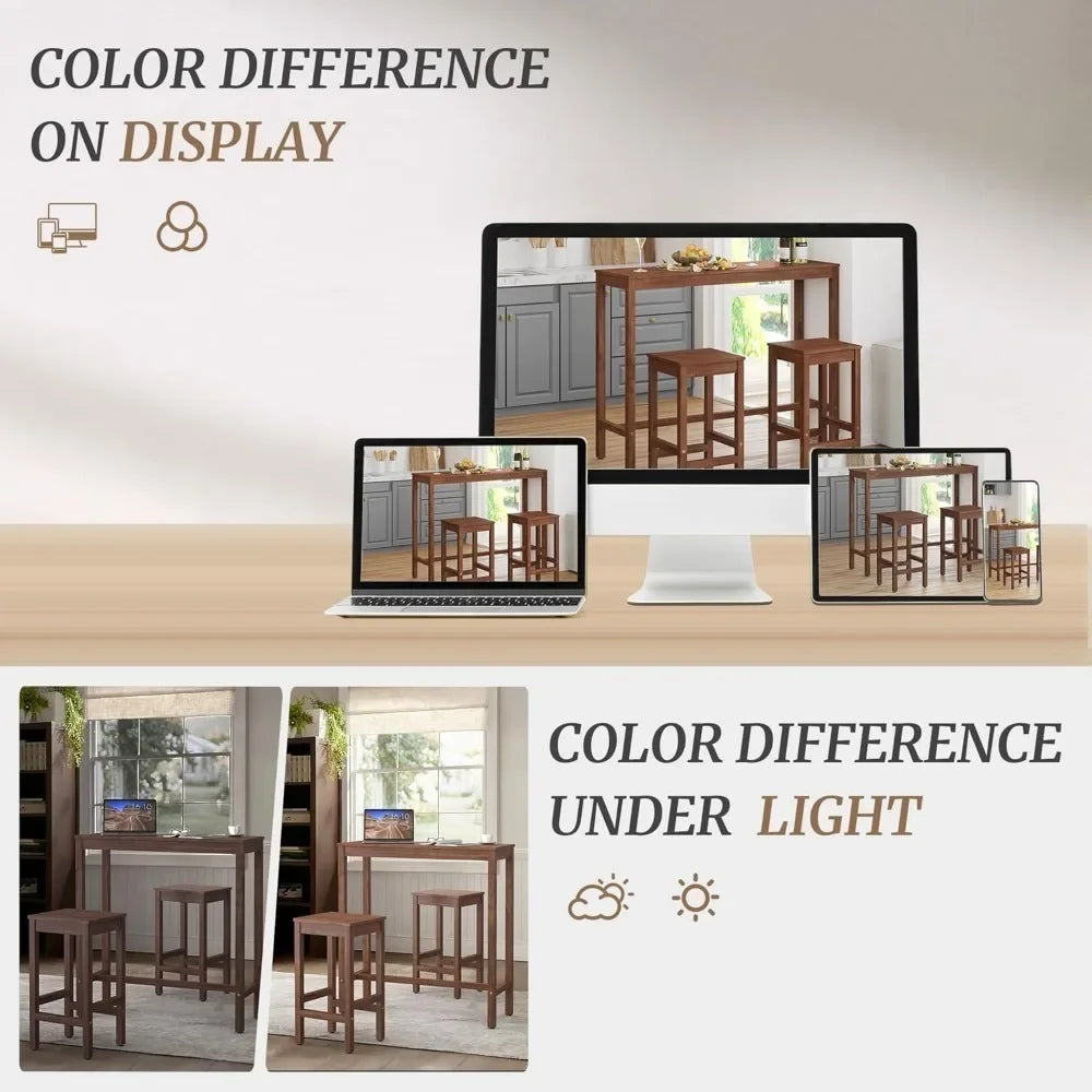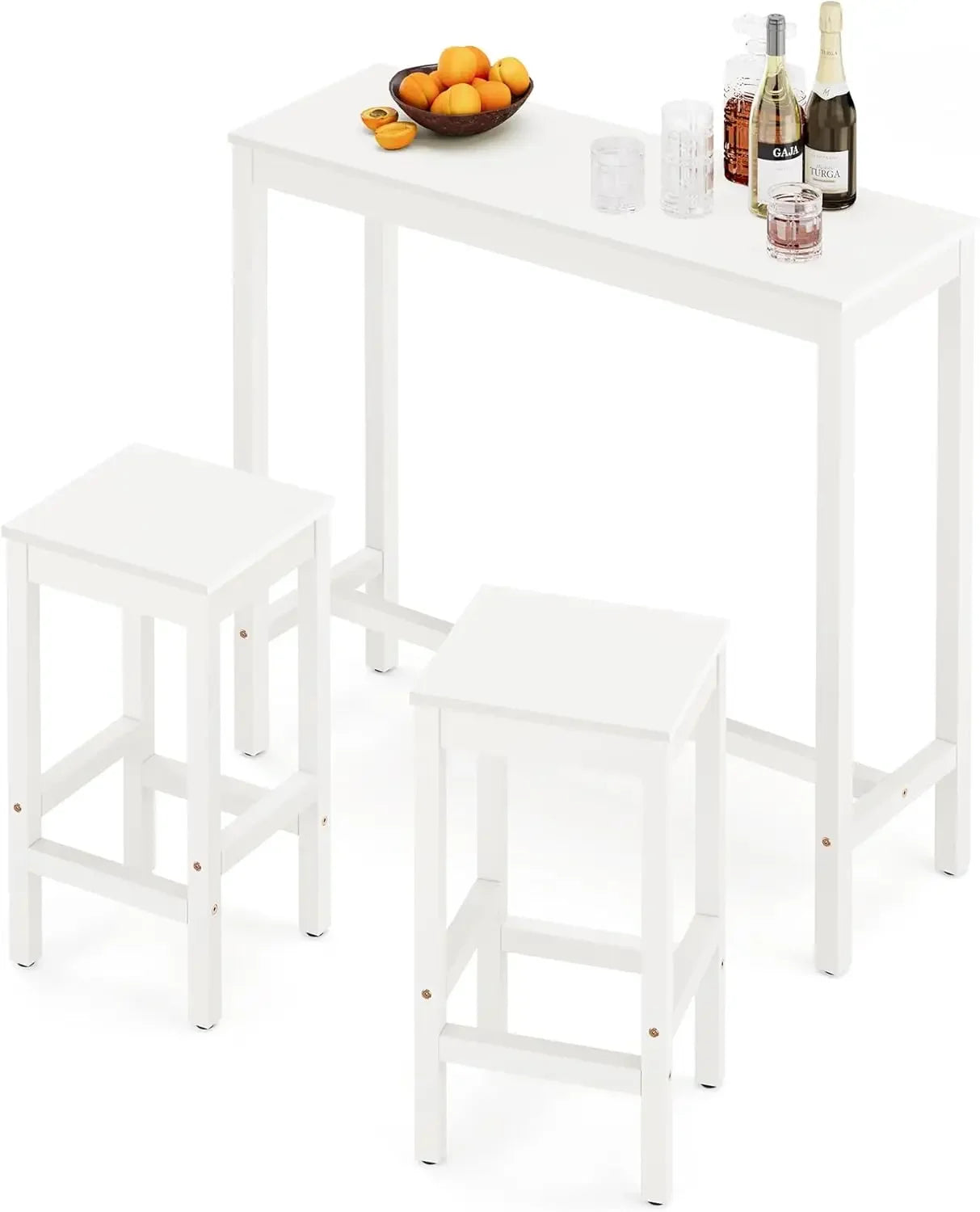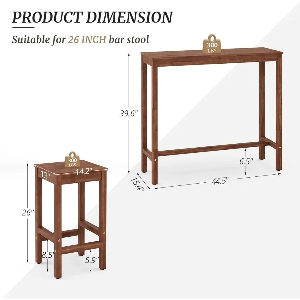 45 inch Bar Table and Chairs Set, Acacia Wood Pub Table with 2 Stools, Rectangular Counter Height Table Set for Dining Room