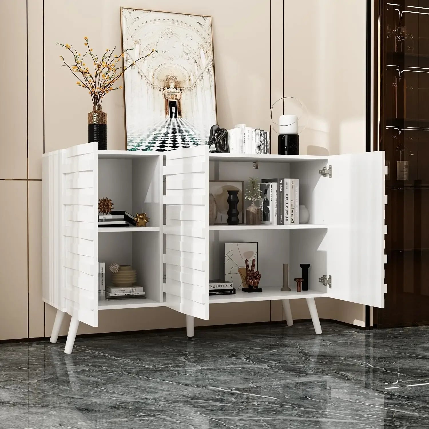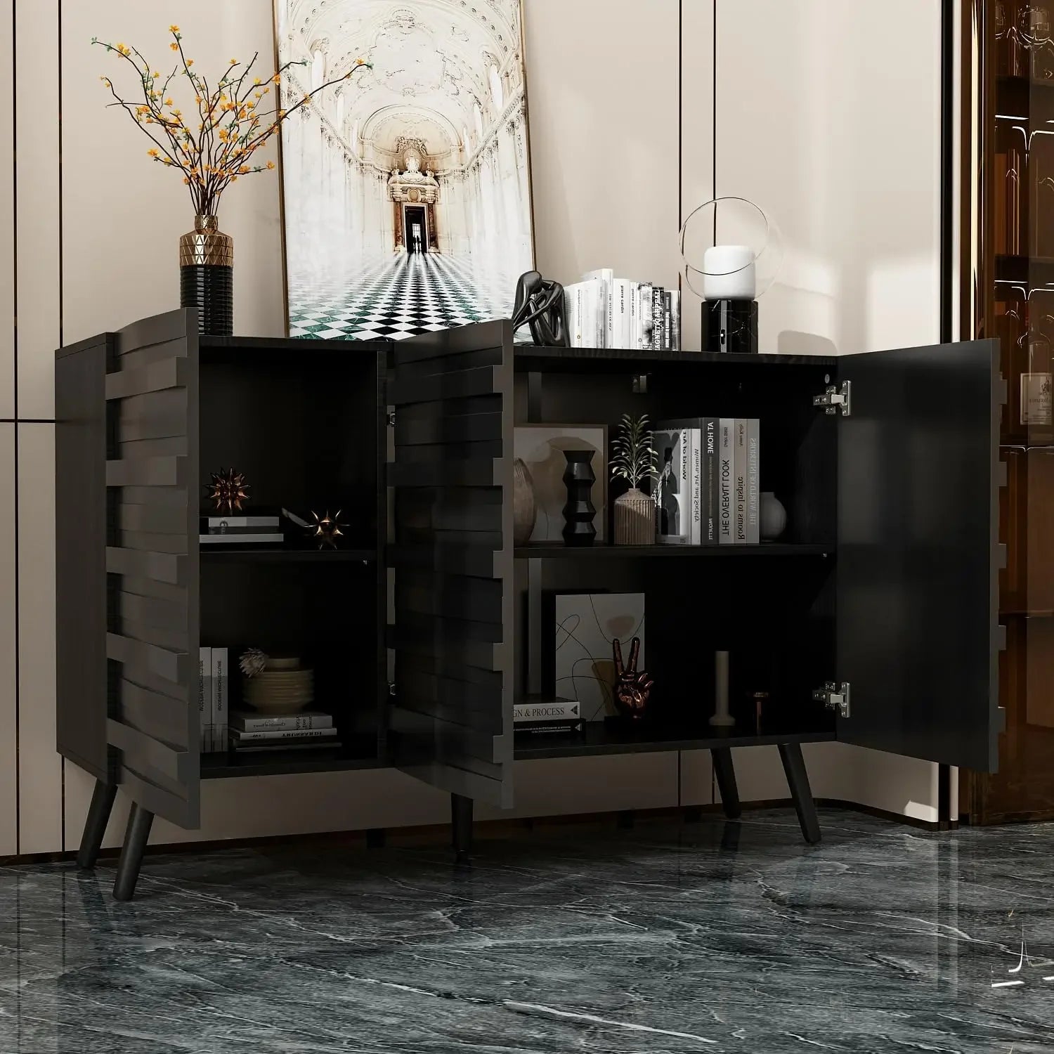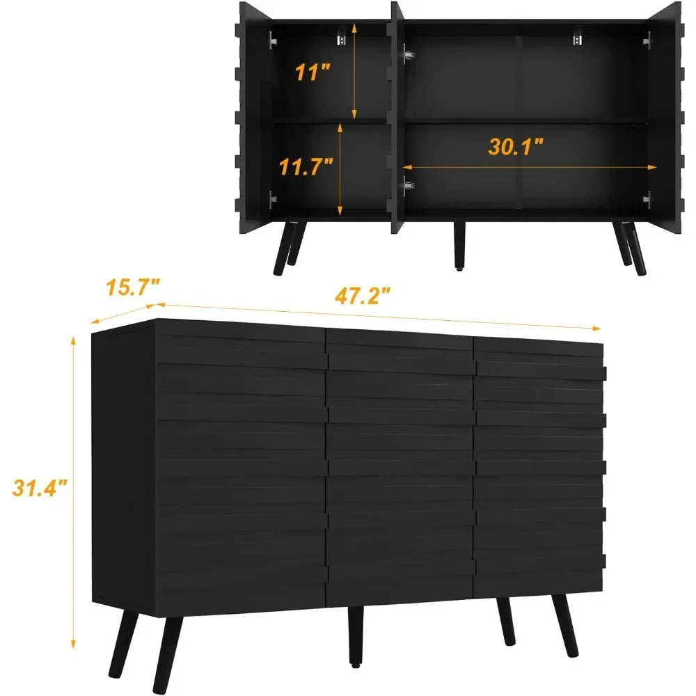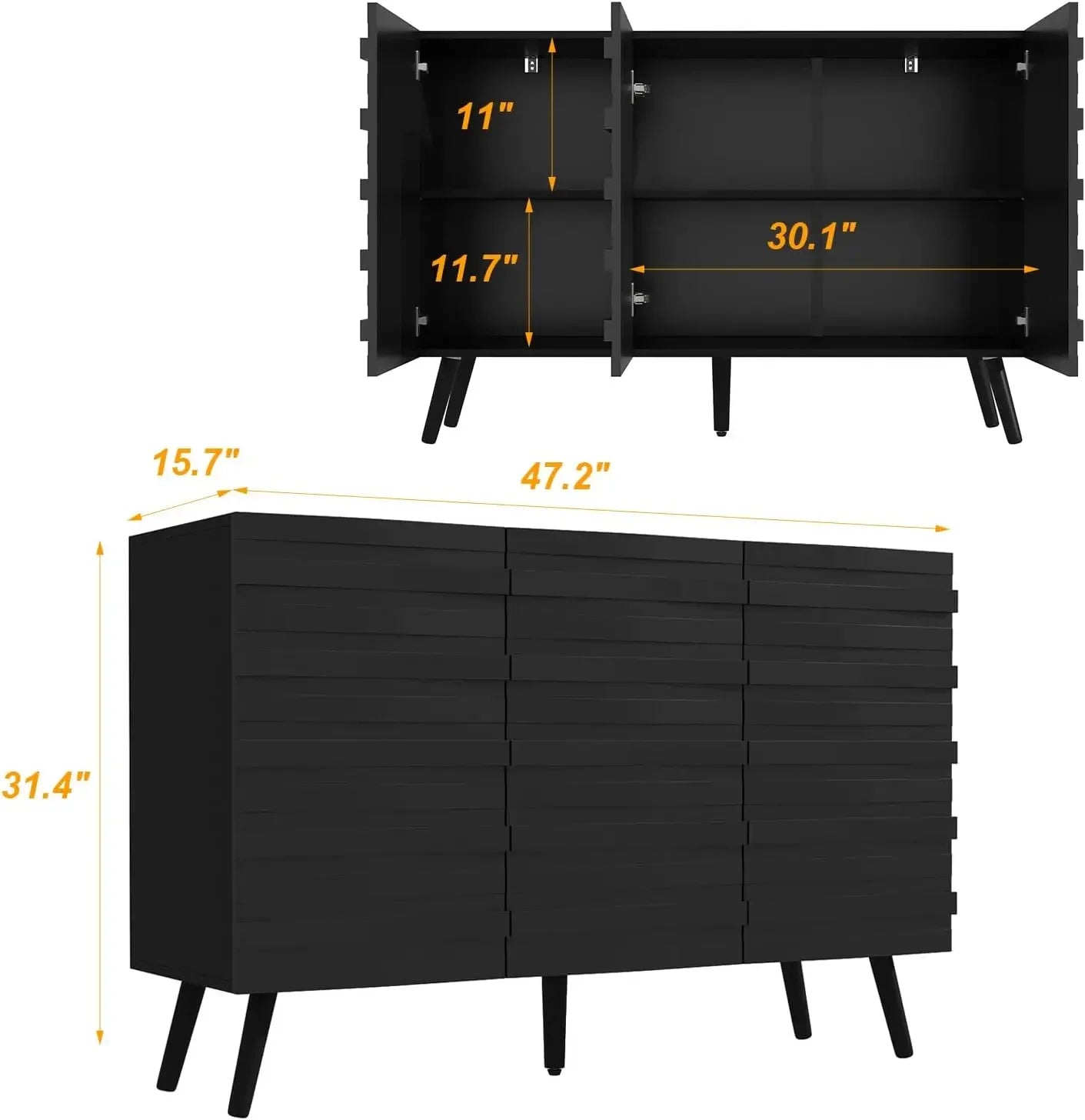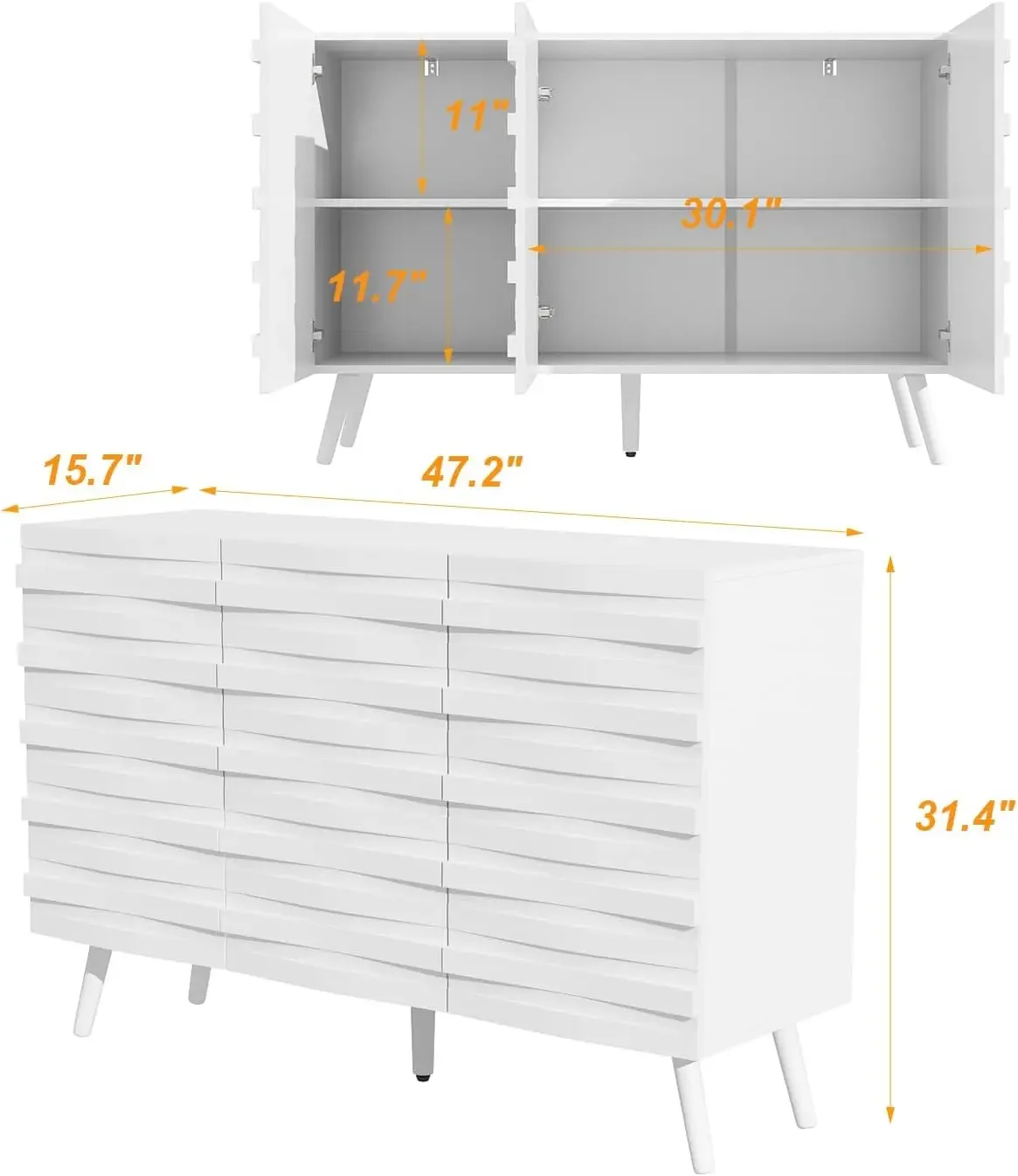 47.2“W Buffet Cabinet Sideboard with 2 Adjustable Shelves, Modern Credenza Cupboard with 3 Stylish Doors, Wood Storage Cabinet.