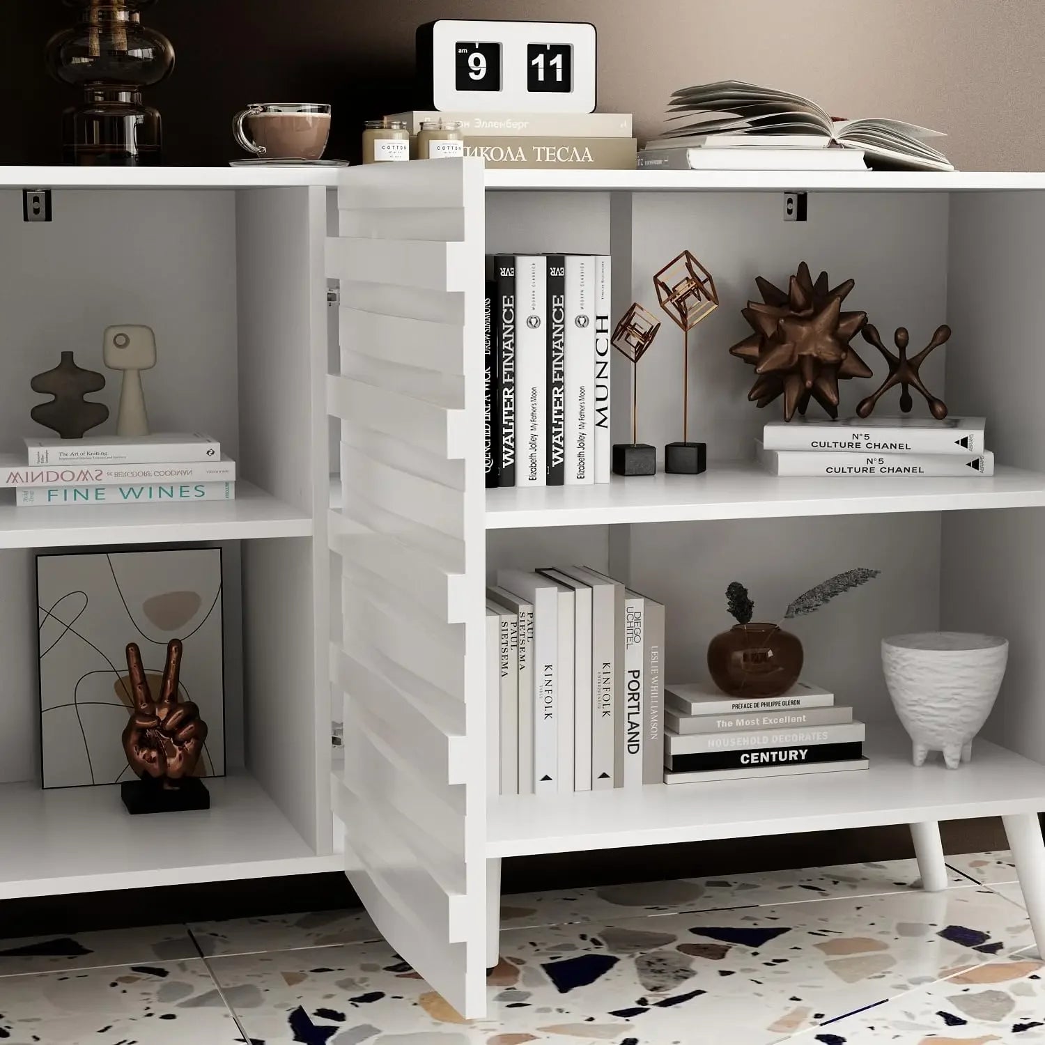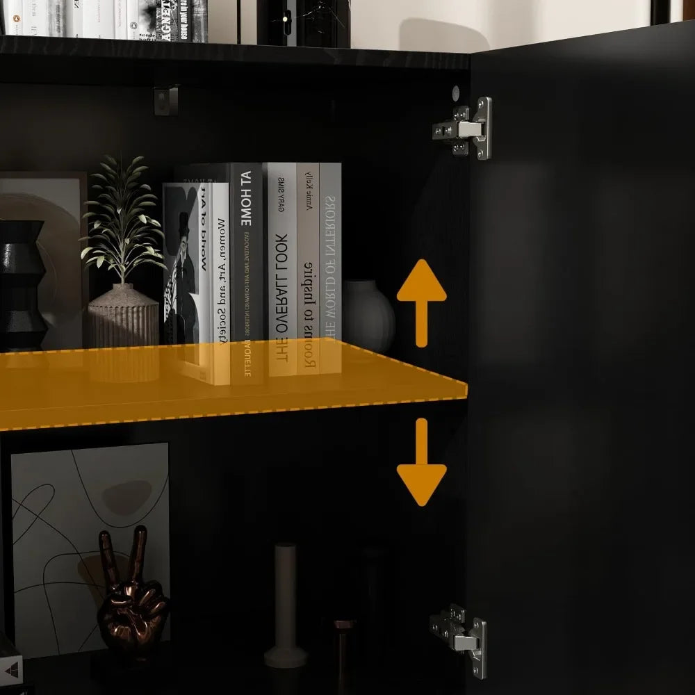 • Sturdy Construction of Frame - Carfted from MDF, the cabinet doors are securely attached with premium metal hinges, ensuring smooth operation and long-lasting durability. The unique 5-legged design offers additional support and stability.
