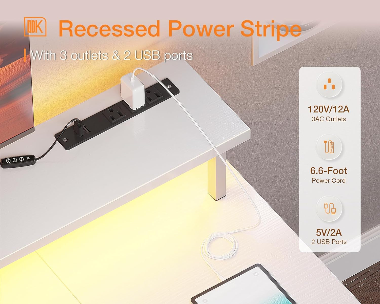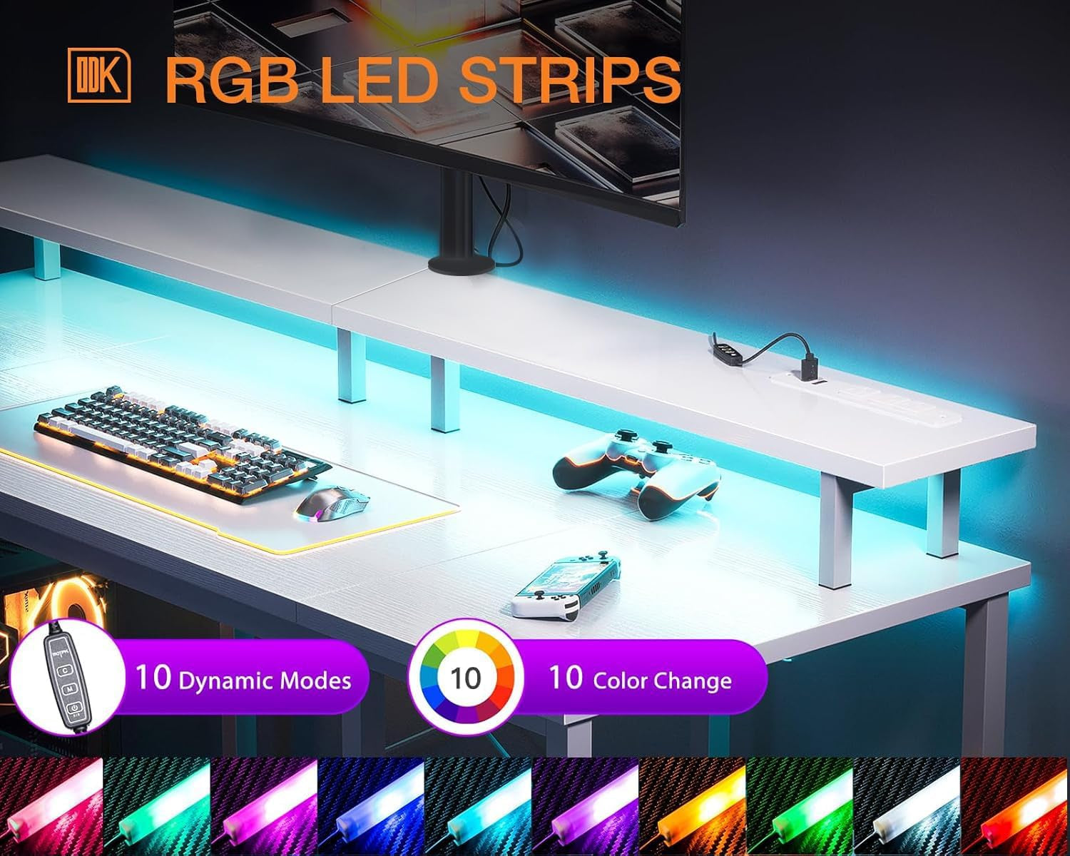Transform your gaming setup with our LED Gaming Desk, designed to create the ultimate gaming environment. This desk not only accommodates two monitors or laptops with its full monitor stand but also enhances the atmosphere with built-in LED lighting.