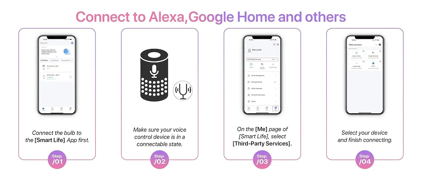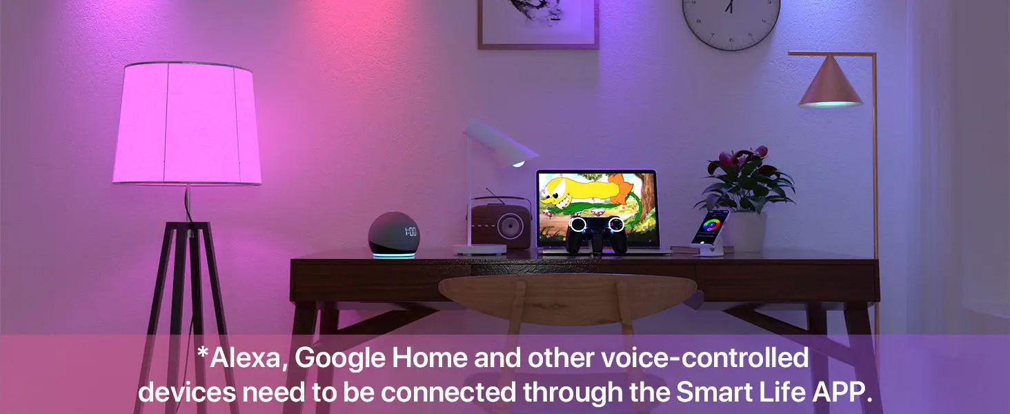 Connect to Alexa, Google Home, and more through the [Smart Life] app for voice control . With WiFi connected, control your lights from anywhere, at any time, via the app.