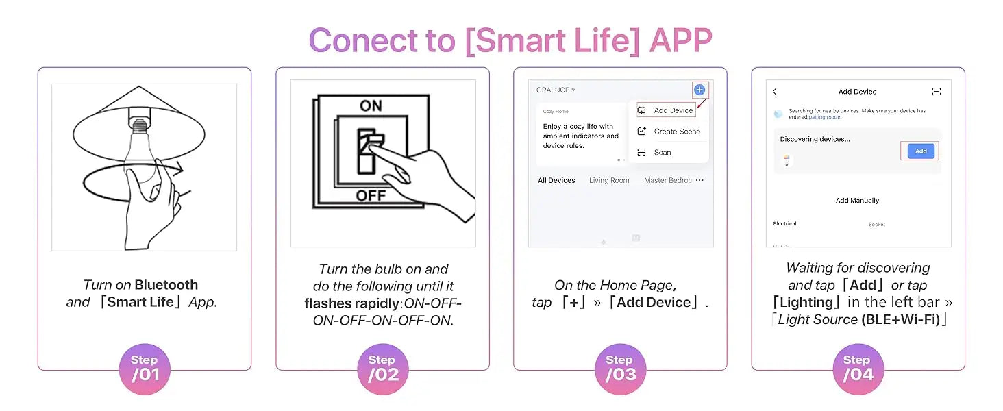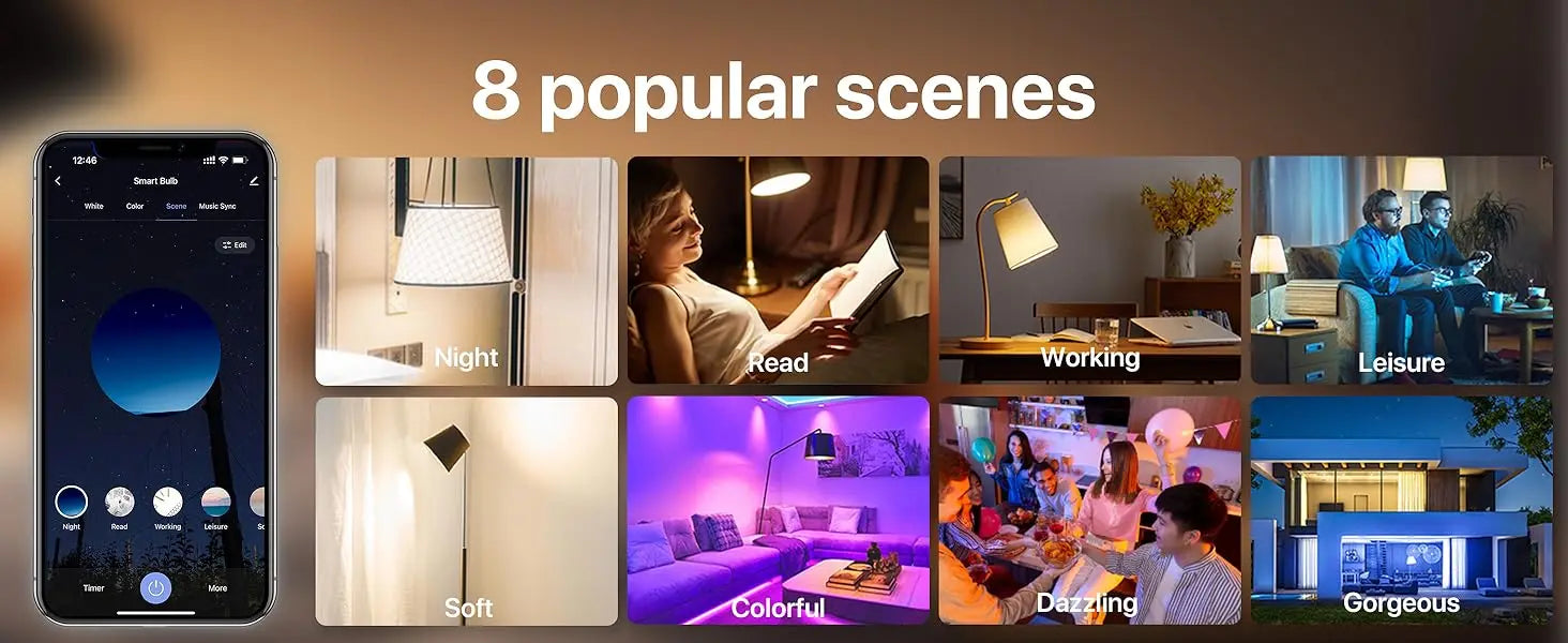Effortless installation and operation. Simply connect to WiFi and Bluetooth, and use the [Smart Life] app to control the bulb, creating the perfect ambiance for any situation.Voice Control & Remote Operation