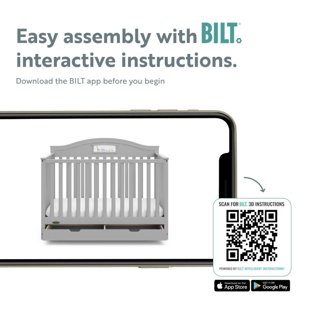 Tell your own story and personalize your child's crib with the all-new Graco Story 5-in-1 Convertible Crib. With its reversible headboard and customizable artwork panel, the Story gives parents the freedom to personalize their crib's look. The Story also features the space-saving convenience of a full-size storage drawer, allowing parents to store and organize nursery essentials beneath the crib. The Story is crafted from pine wood, engineered wood, and wood composites, includes Euro drawer glides, and its applied finish has been tested to meet or exceed the applicable ASTM and CPSIA safety standards. The Graco Story 5-in-1 Convertible Crib with Drawer is GREENGUARD Gold Certified - Certified products are screened for more than 10,000 chemicals and VOCs known to pollute indoor air. Also, the Story is JPMA Certified - meaning it's been expert tested by third-party, accredited laboratories to meet or exceed all of the applicable category voluntary and mandatory safety standards. Designed to adapt to your growing baby, the Story is equipped with an adjustable mattress support base with 4 different height options – meaning, the height of the mattress support base can be lowered as your child grows (please note, this crib may only be used until your child can easily climb out or is taller than 35 inches). To support your child's journey from babyhood to toddlerhood (and beyond), the Story is able to be converted from a crib to a toddler bed (compatible