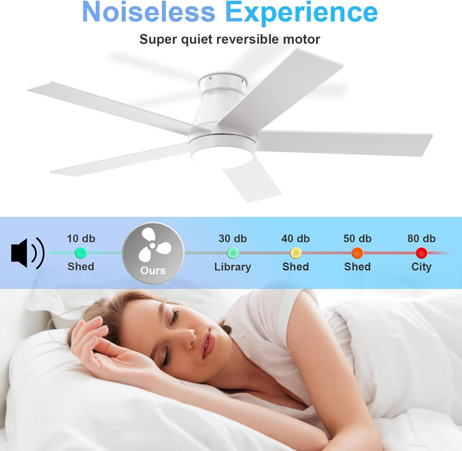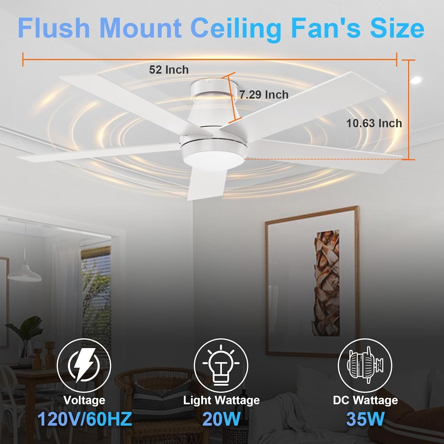 Transform your living area into a stylish oasis with our sleek and modern 52" Ceiling Fan. Designed for both aesthetics and functionality, this flush mount ceiling fan captures the essence of contemporary decor while providing efficient air circulation and superior lighting.