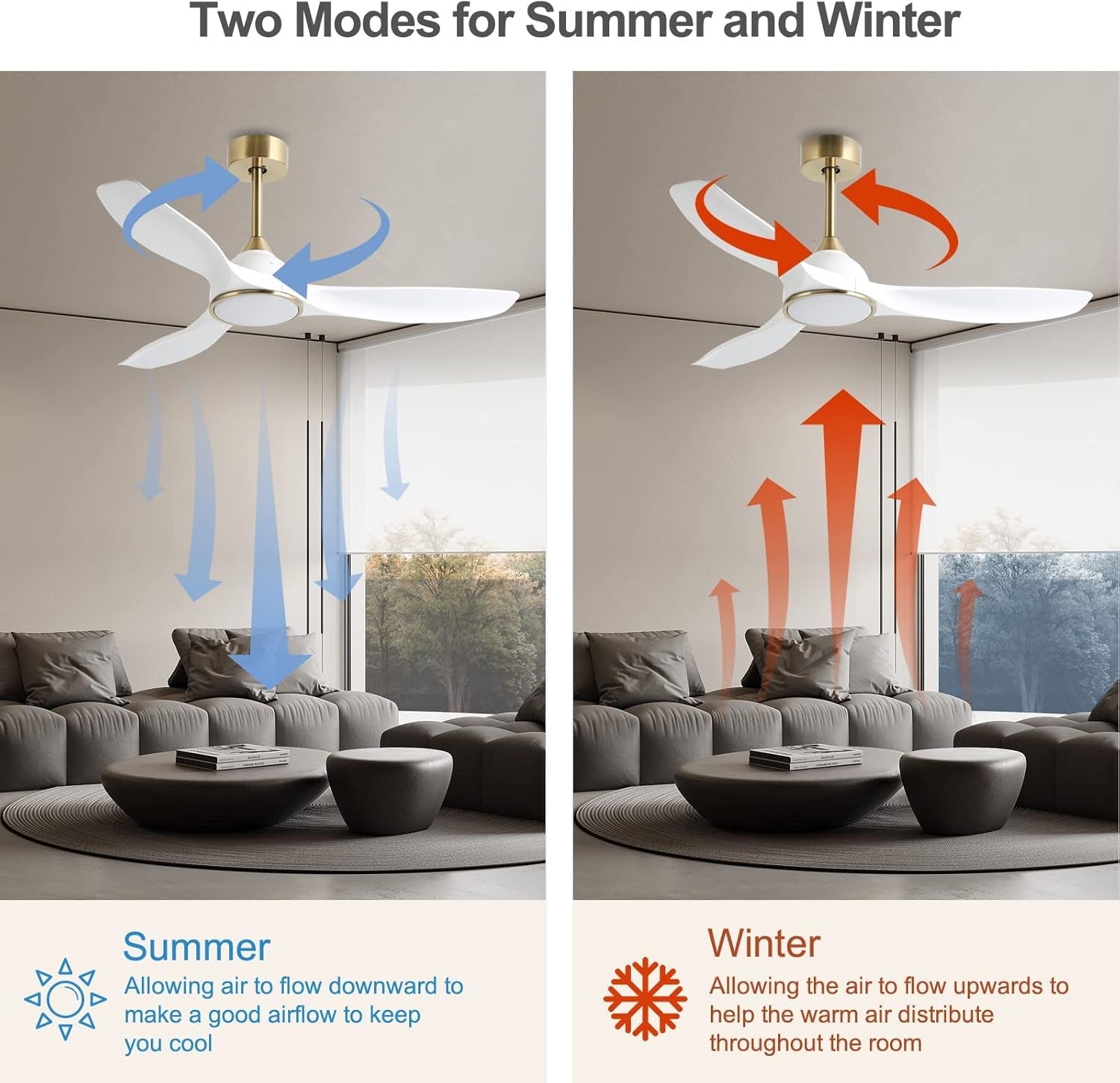 Experience the perfect blend of modern design and functionality with our Sleek 52-Inch Quiet Ceiling Fan. This ceiling fan not only enhances your room's decor but also provides exceptional performance with its advanced features.