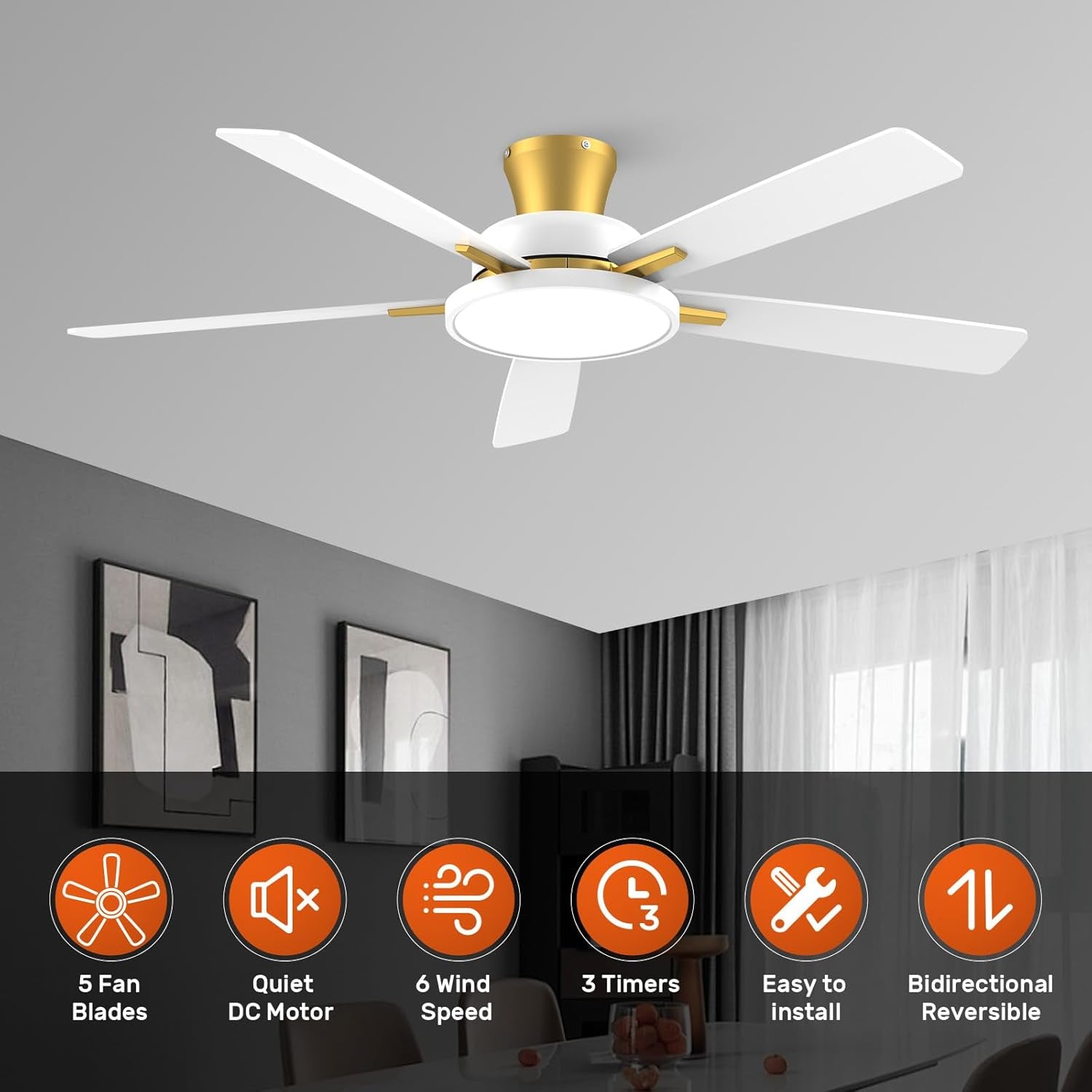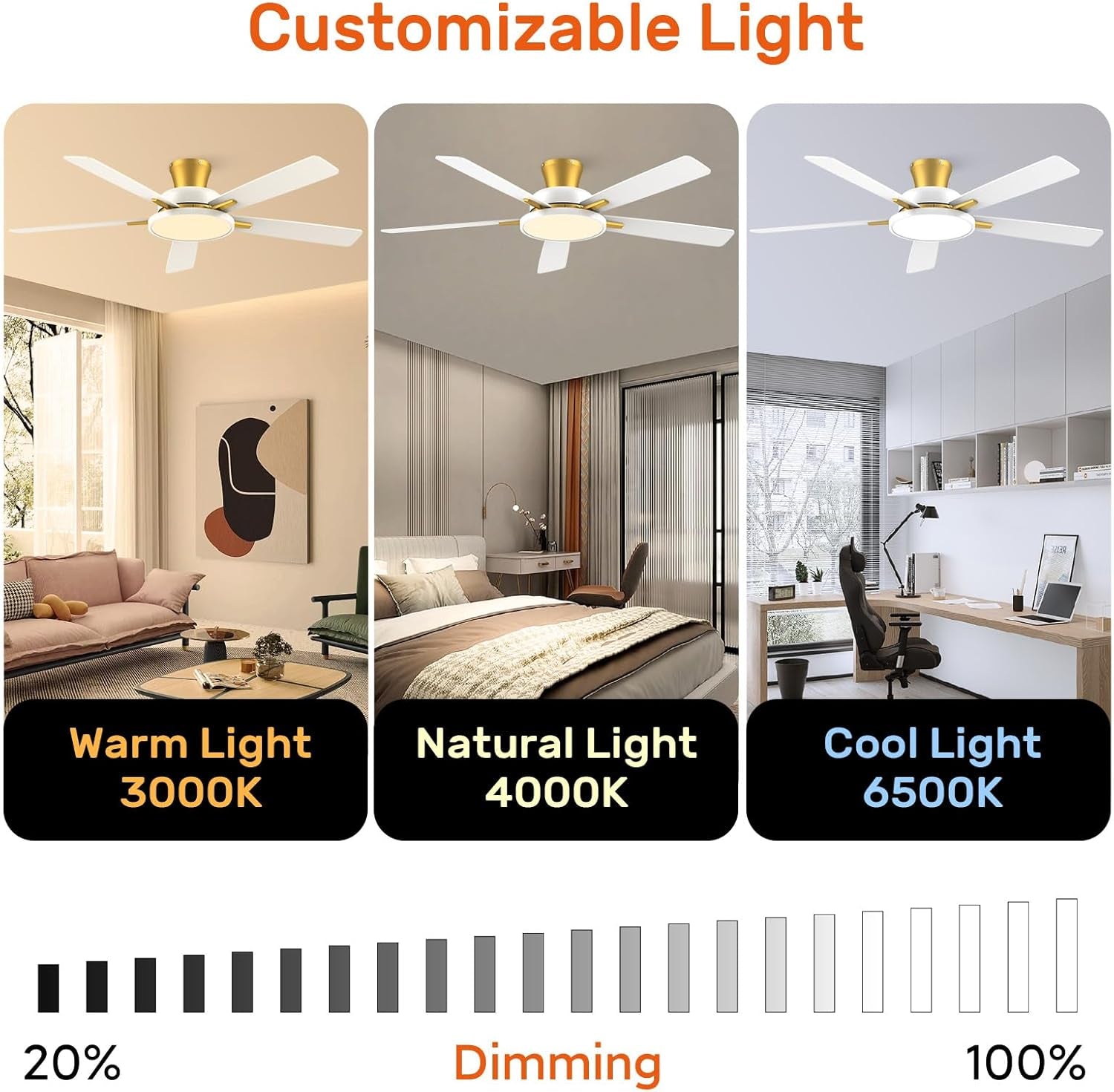 Enhance your living space with the Silent 52 Inch Ceiling Fan with Dimmable Lights, a stylish and versatile solution for year-round comfort and lighting.