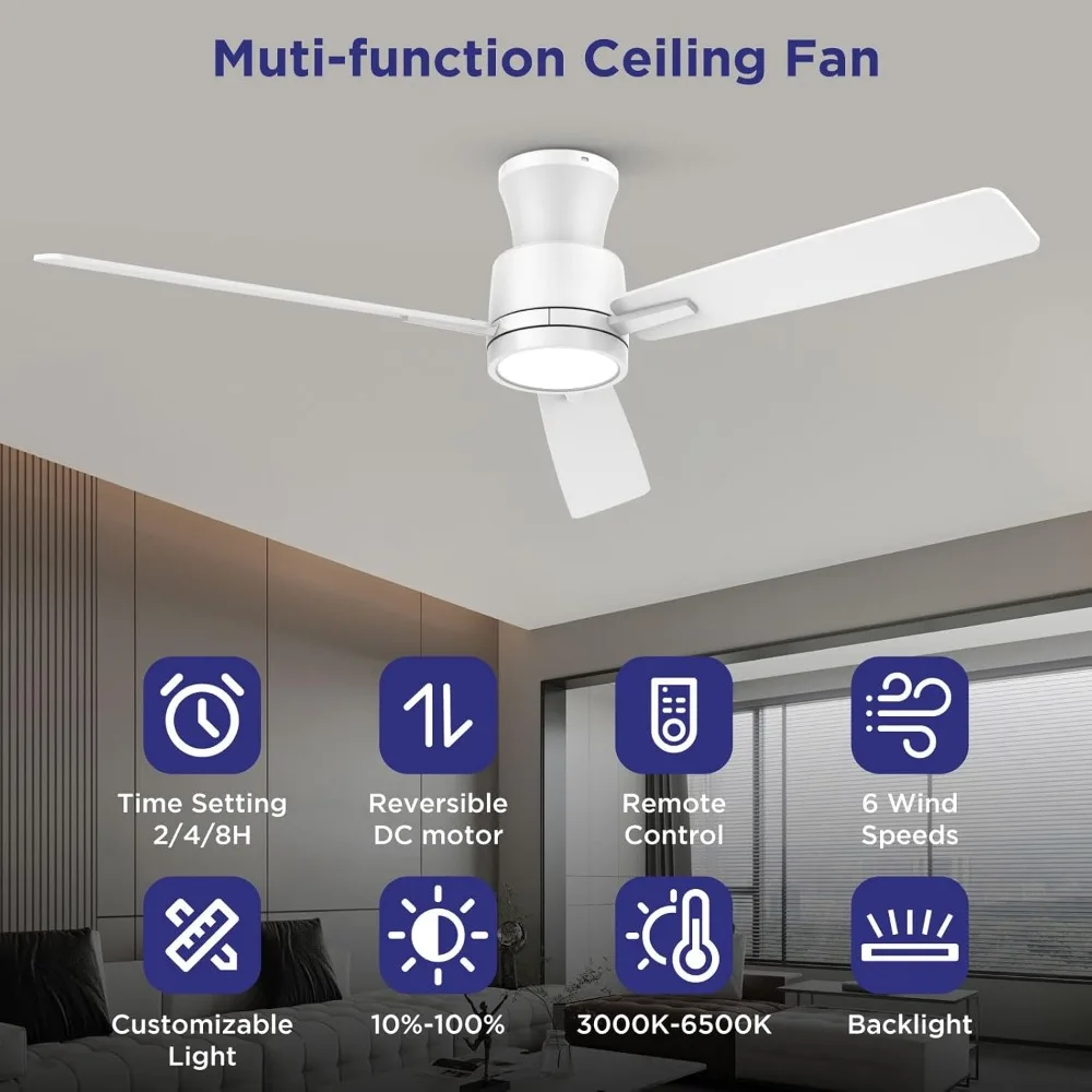 4W Night Light Mode: This low-profile ceiling fan includes a 4W night light with a soft 3000K glow, creating a cozy, ambient atmosphere while providing gentle illumination to ease nighttime darkness