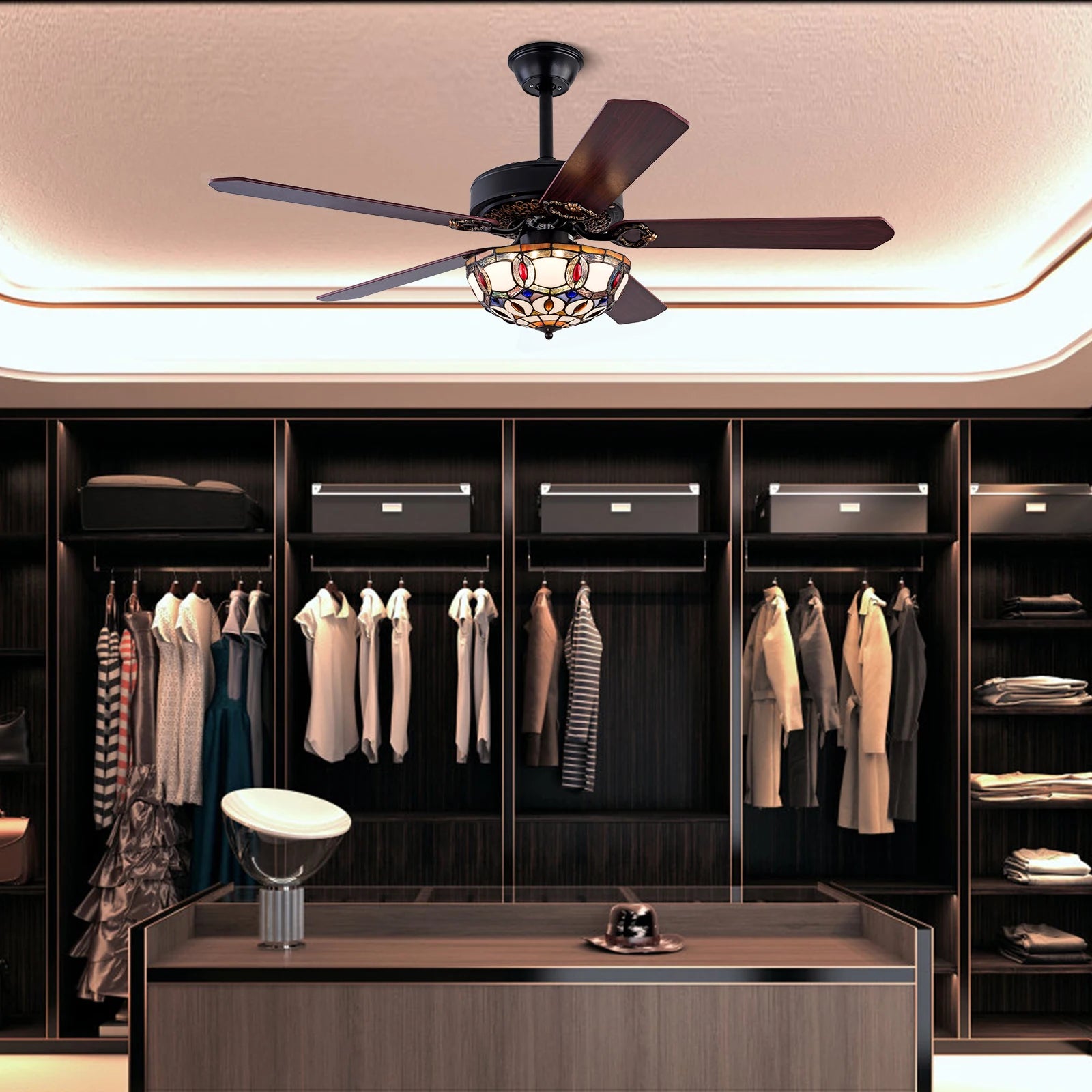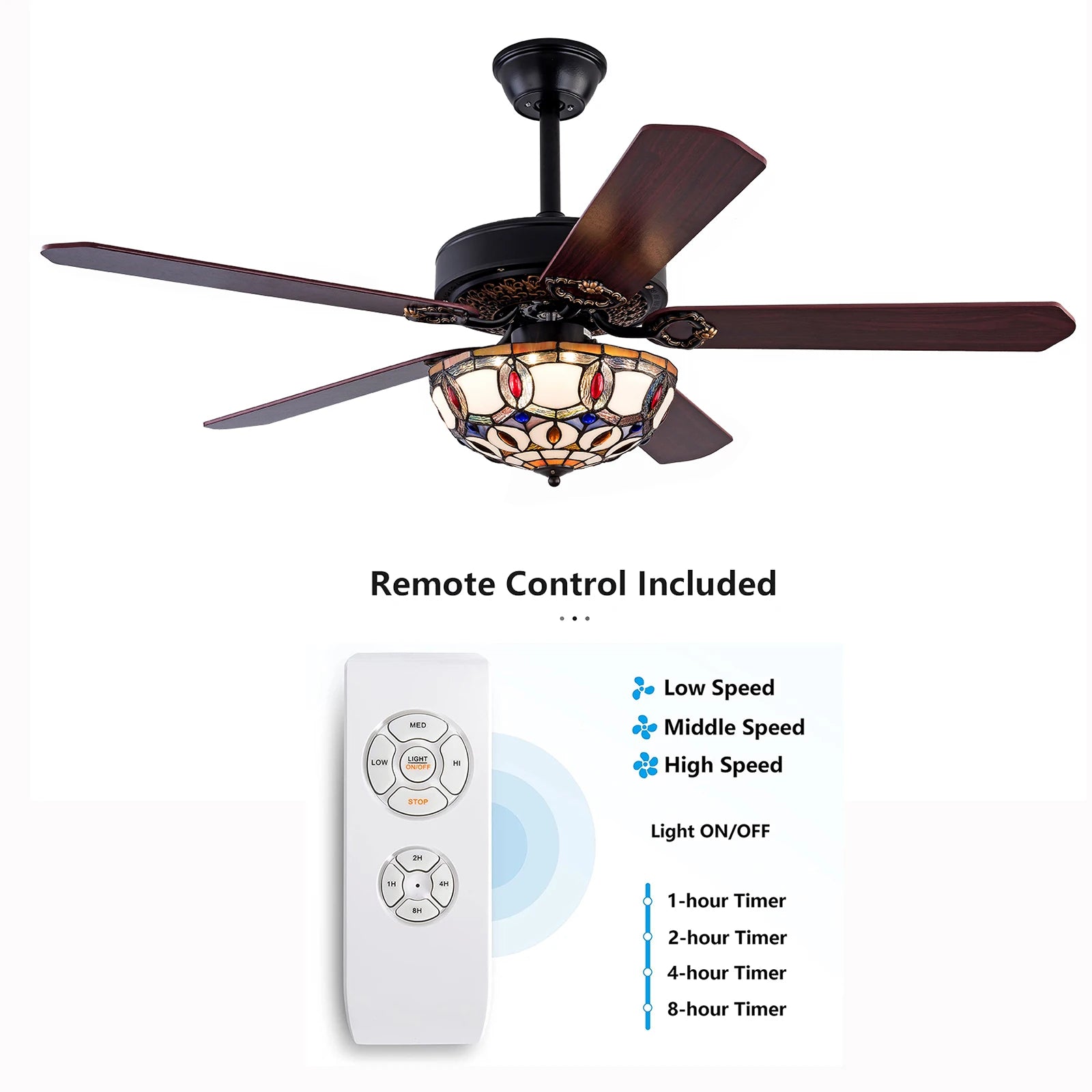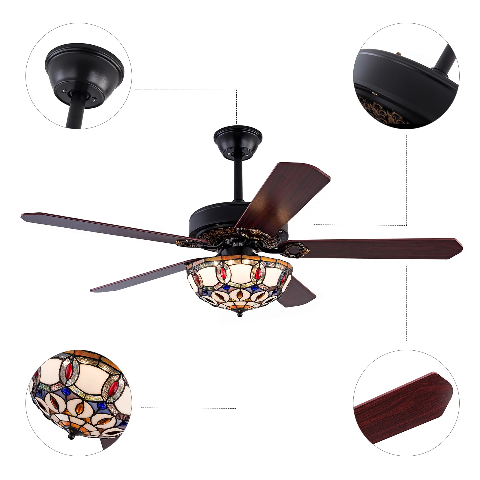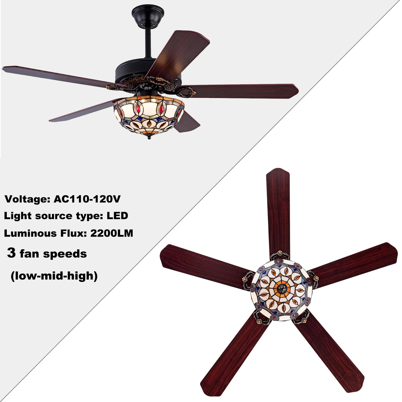 【Premium Material】 : a Unique Metal Round Arched Lampshade Is Used, Bright Crystal Decoration Is Placed on the Outside. Simple but Elegant, 5 Wood Blade for Great Air Movement. 2 Downrod Provide