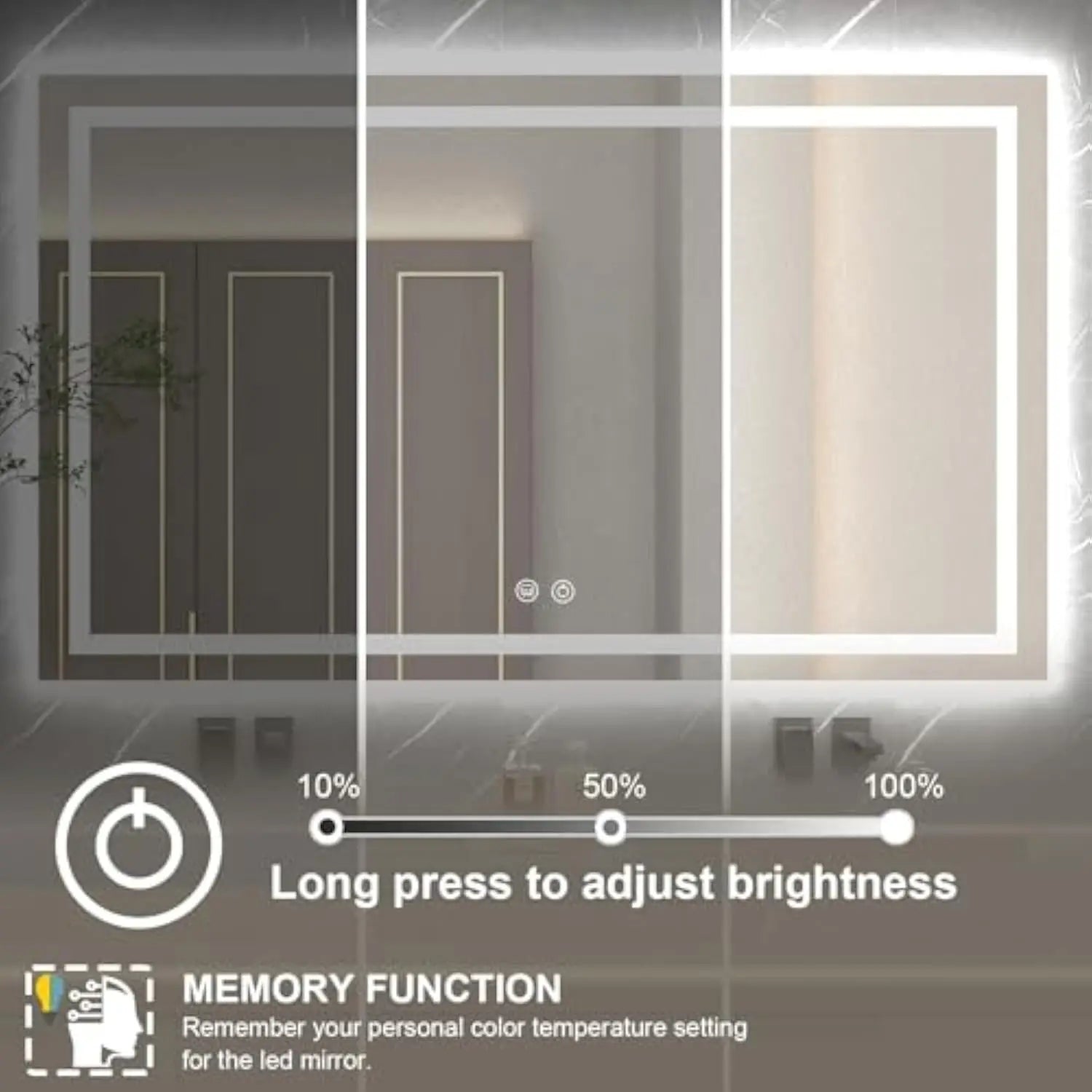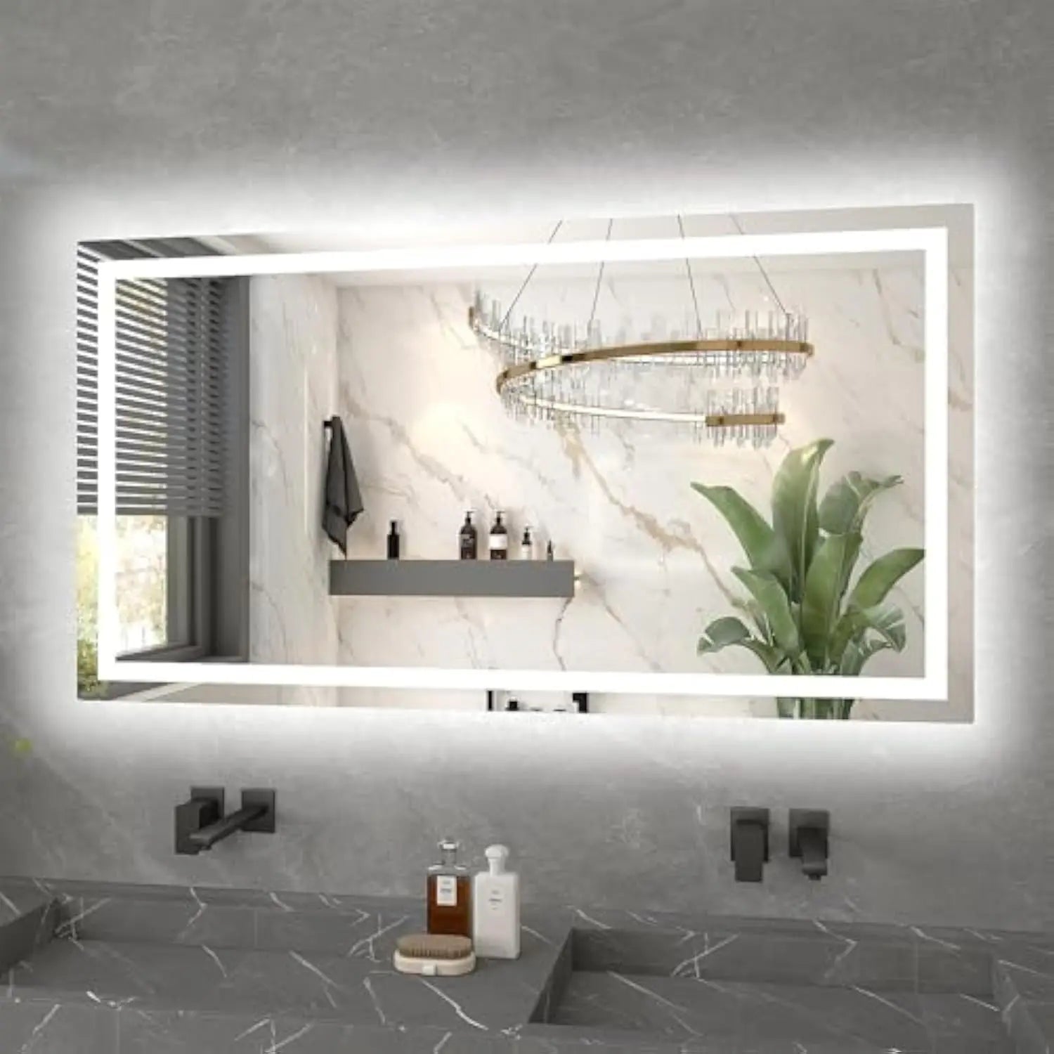 【extra Brightness And Energy-saving] Led Bathroom Mirror Offer 9500 Lux High Brightness Illumination, Brighter And Clearer More Than Other Led Bathroom Vanity Mirror Because We Have Certification On Ul/fcc, The Led Strip And Driver Function Stably, Ensuring The Lights Are Bright Enough What's More, It Featuring Environmentally Friendly Structure, It Saves 32. 8% On Your Energy Bills And Significantly Reduce Carbon Footprint. 【versatility and convenience】我们的 front and backlit led mirror for bathroom with 3 touch buttons. Long press the touch switch to adjust the 20%-100% brightness. Short press the light button to adjust 3 color temperature, 3000-6000k (warm light, natural light, white light). Only set one time, memory function can remember your personal setting for the smart led mirror you last used. 【防潮、 rustproof design】55x30 led bathroom mirrors are of integrated design, prevent the color light strip moisture and rust,延长使用寿命。 Even in a damp bathroom, this front and back mirror will remain intact, allowing you to enjoy the beauty in the bathroom to the fullest. 【the 5th generation of ultra-clear glass】upgrated with a silver plated layer,这款 led vanity mirror features a crystal clear reflection that ensures every detail captured with precision. Protected by a sturdy high-quality tempered shatterproof glass, which is highly resistant to scratches and breakage, ensuring safety and avoids shards from splashing. 【100% satisfaction and widely used】if the bathroom mirror is damaged or broken, you will have a 100% satisfactory solution. The lighted bathroom mirror pass drops and impact test for shipment to ensure mirror transportation safety. Led bathroom vanity mirror prefect for bathroom, clothing store, powder room, hair salon, hotel, dining room, hall, etc.,