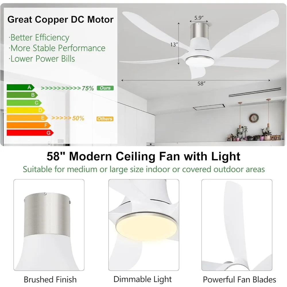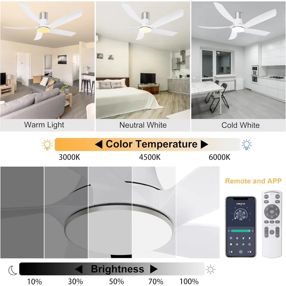 Great Fan - The 5 blades and copper DC motor have better energy efficiency and quiet performence on top of strong power. The reversible motor brings you 6 speeds of coolness in the summer, while in the winter it can be reversed to drive better air circulation. This hugger ceiling fan with light provides you with a stable and quiet experience of less 30dB throughout the year.
