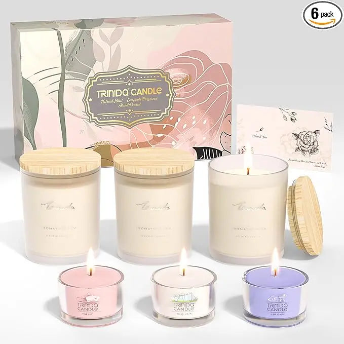 Gift-Ready Luxury Candle Set: Curated 6-Piece Scented Candle Gift Set (3 Full-Size + 3 Travel-Size) - Artfully packaged for birthdays, weddings & holiday gifting. Includes crowd-pleasing scents like Lavender Breeze and Clean Linen