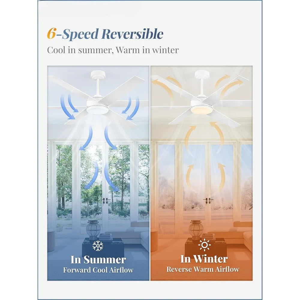 Large & Modern Ceiling Fan with Light:Our 60 inch ceiling fan with lights has two-color blades(White+Modern Wood), so you can choose a side according to home decoration style.Our outdoor ceiling fan with 6 blades can help you get a comfortable environment
