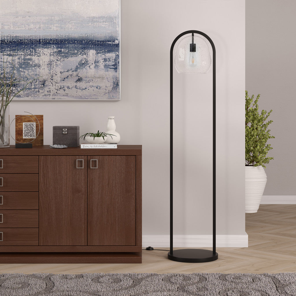 Keywords | 65" black column floor lamp, lamp clear pattern seeded glass, column floor lamp clear, floor lamp clear pattern seeded, pattern seeded glass globe shade |