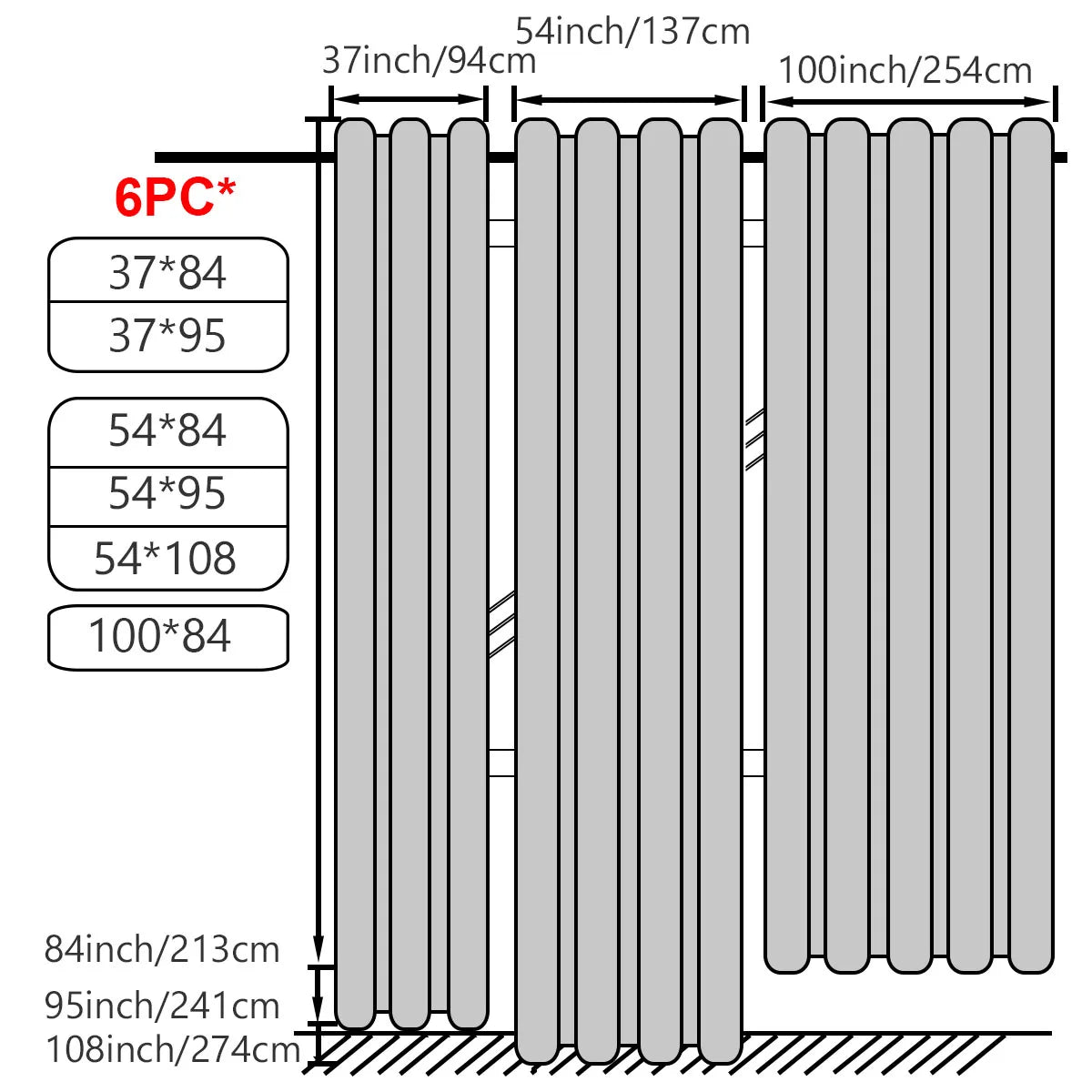 numbers of grommets: 6/8/12
