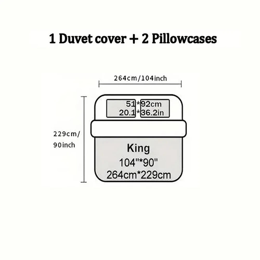 The king size comforter set includes 1 comforter (104" x 90") and 2 pillowcases(20" x 36").