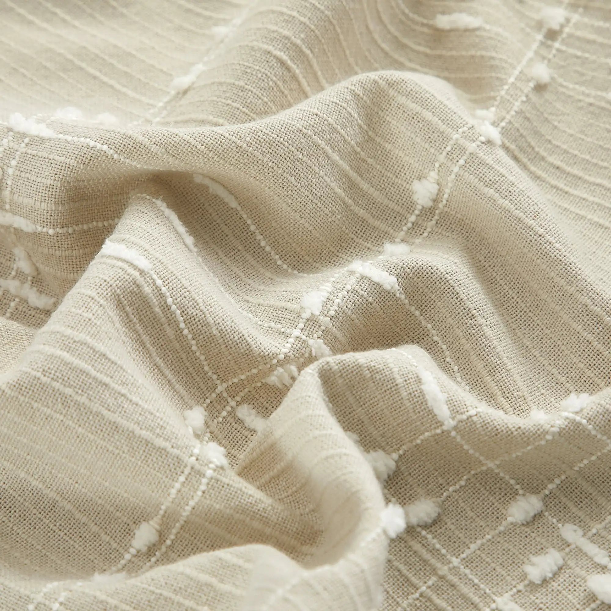 ['The 7 Piece Plaid Beige Bed in a Bag Comforter Set includes a comforter, 2 shams, and a 4-piece sheet set. It is available in Queen size , with dimensions of 92 x 96 for the comforter , and 102 x 90 for the flat sheet. The set is made of 100% polyester fill and is machine washable . The set is suitable for adults, seniors, and teens, and is designed to be unisex. The light fabric and neutral style make it a versatile choice for any room. The set includes 2 pillowcases and a fitted sheet with a 16 depth .']
