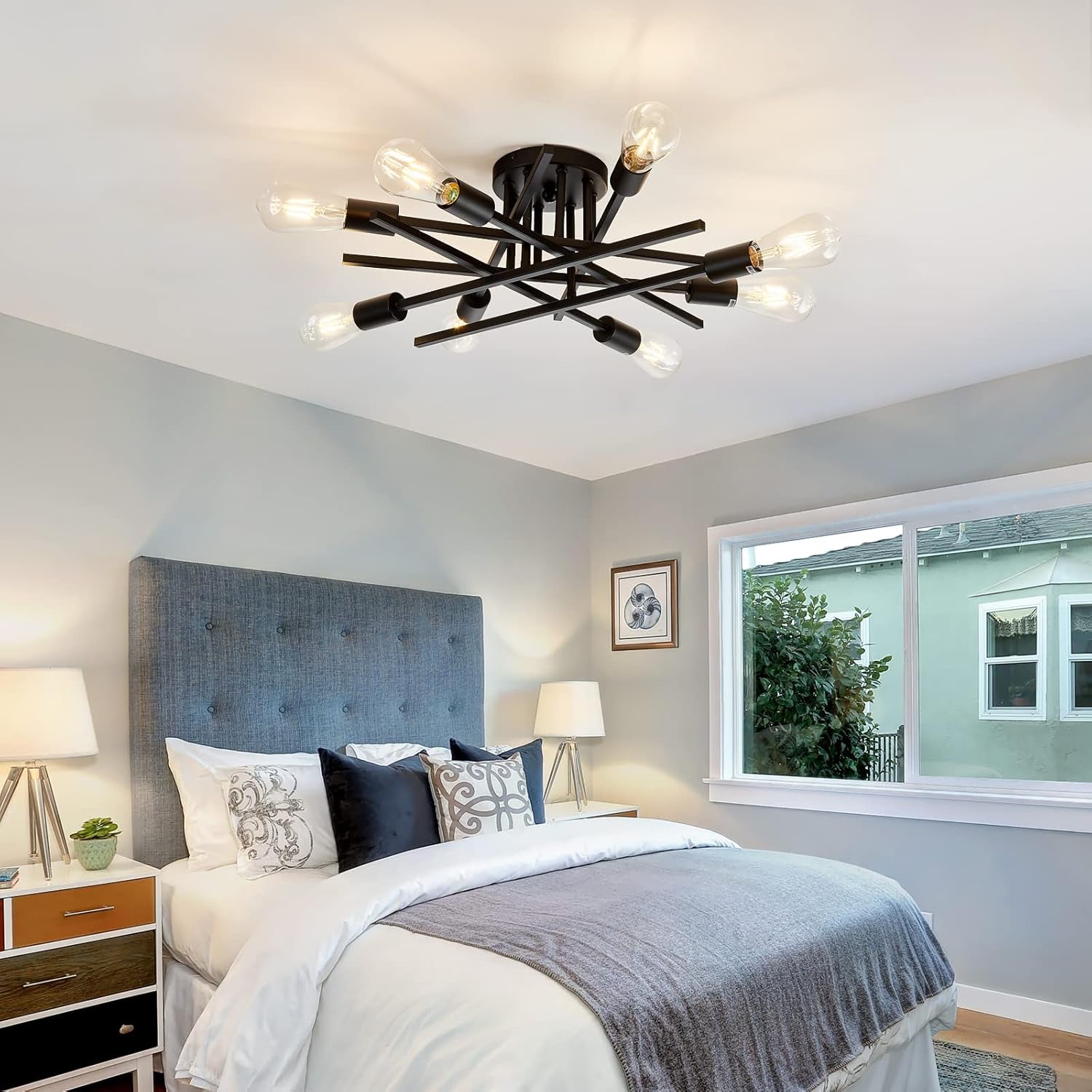 Elevate your interior decor with the Modern Vintage 8-Light Sputnik Chandelier Fixture, a perfect blend of retro and contemporary styles. This stunning matte black chandelier serves as a striking focal point in any room, exuding both elegance and charm. Ideal for anyone looking to enhance their home’s ambiance while maintaining valuable floor space, this fixture is not just a light source, but a statement piece.