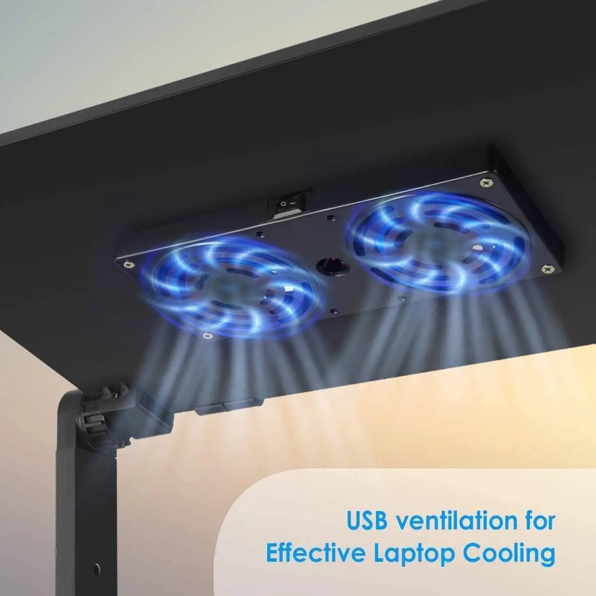 πŸ’» HEAT DISSIPATION FUNCTION -- There are two silent CPU fans are powered through USB ports to suck hot air from under your laptop for active heat dissipation, the easiest way to keep your computer cool. And Ventilation holes could provide strong air flow to dissipate the heat from bottom of your notebook.