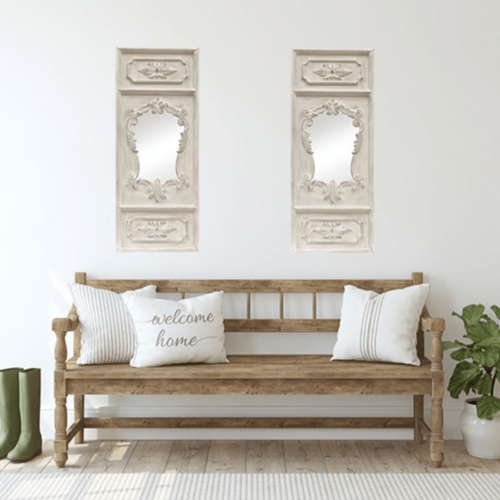 Enhance your living space with the exquisite Angelique French Trumeau Stone White Wall Mirror. This sophisticated mirror, designed with a graceful essence, is perfectly suited for those seeking to embody the charm of French Country decor.